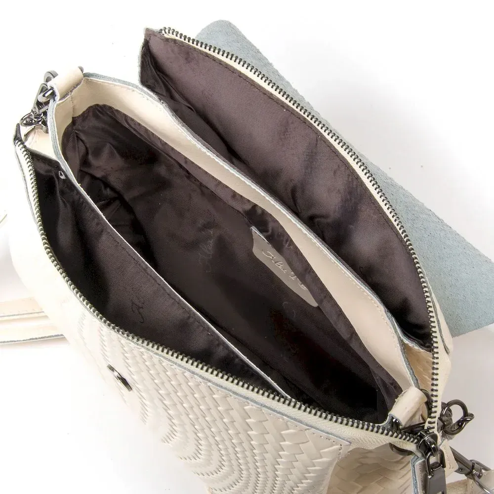 Женская сумочка Alex Rai. Под клапаном дополнительно закрывается на молнию. Внутри находится три отделения. В среднем отделении есть открытый карман и карман на молнии. Снаружи сумки на обратной стороне расположен карман на молнии. В комплекте есть регулируемый плечевой ремень и сьемная ручка.