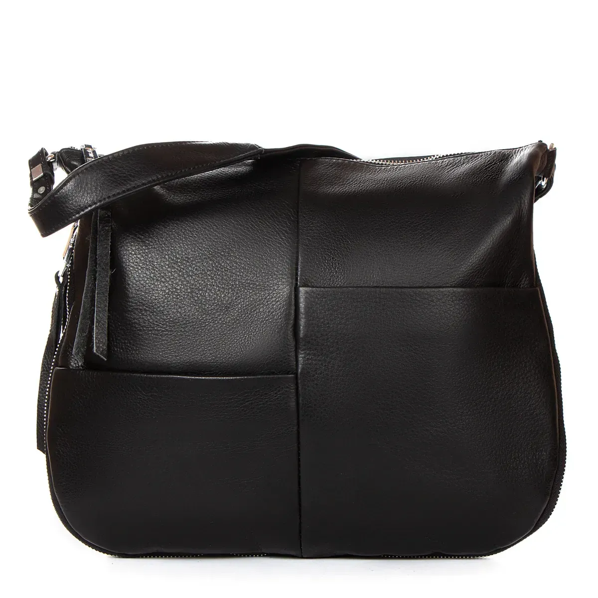 Женская большая кожаная сумка Alex Rai. Изготовлена из натуральной мягкой кожи. Закрывается на молнию. Внутри находится двойное отделение, разделенное карманом-перегородкой на молнии, открытый карман и боковой карман на молнии. Благодаря молнии-расширения дно сумки можно увеличить в глубину. Снаружи сумки на фасаде есть два открытых кармана, а на обратной стороне есть карман на молнии.