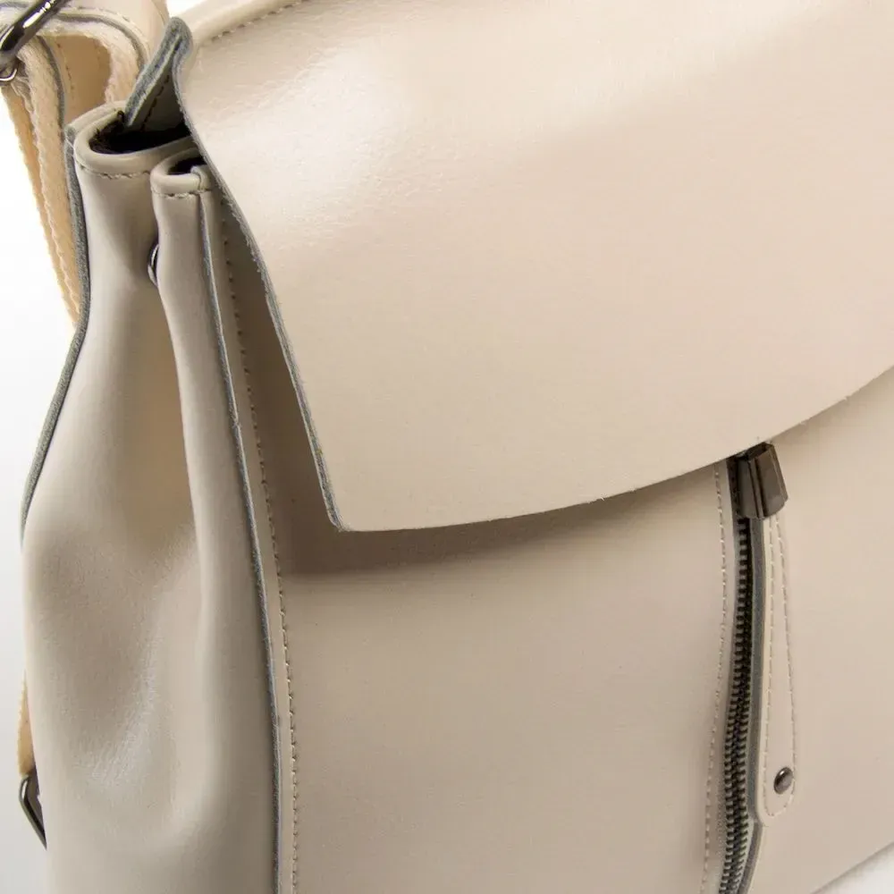 Закрывается на молнию. Внутри находится основное и дополнительное отделение, разделенное карманом-перегородкой на молнии, открытый большой карман и боковой карман на молнии. На фасаде расположены два кармана на молнии, а на обратной стороне один карман. На торцах сумочки есть маленькие открытые карманы.
