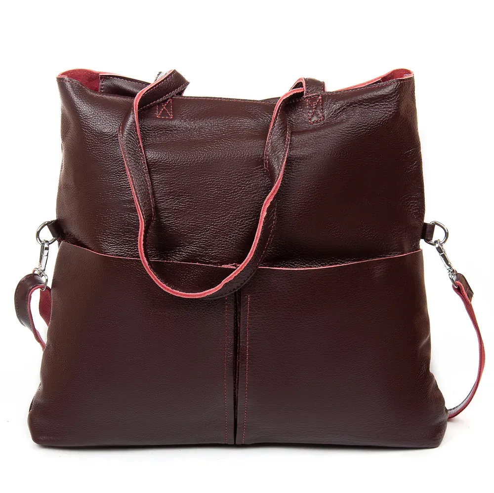 Женская большая кожаная сумка Alex Rai. Изготовлена из натуральной мягкой кожи. Сумку можно сложить вдвое и носить на плечевом ремне. Закрывается на молнию. Внутри находится одно большое отделение с открытым боковым карманом и карманом на молнии. Снаружи сумки на фасаде расположены два больших открытых кармана, а на обратной стороне находится карман на молнии. Жесткое дно.