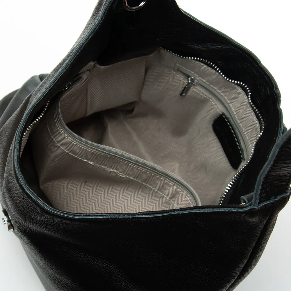 Женская кожаная сумка-хобо Alex Rai. Изготовлена из натуральной мягкой кожи. Закрывается на маленький клапан и молнию. Внутри находится двойное отделение, разделенное карманом-перегородкой на молнии, открытый карман и боковой карман на молнии. Снаружи сумки на обратной стороне есть карман на молнии. Дно сумки жесткое.