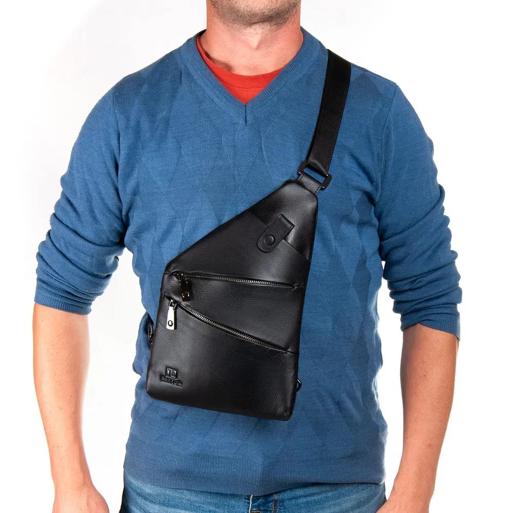 Изготовлена из натуральной мягкой кожи. Закрывается на молнию. Внутри находятся три отделения разделенные карманом-перегородкой. Среднее отделение дополнительно закрывается на молнию и внутри находится боковой открытый карман и карман на молнии. Снаружи сумки на обратной стороне расположен карман на молнии.