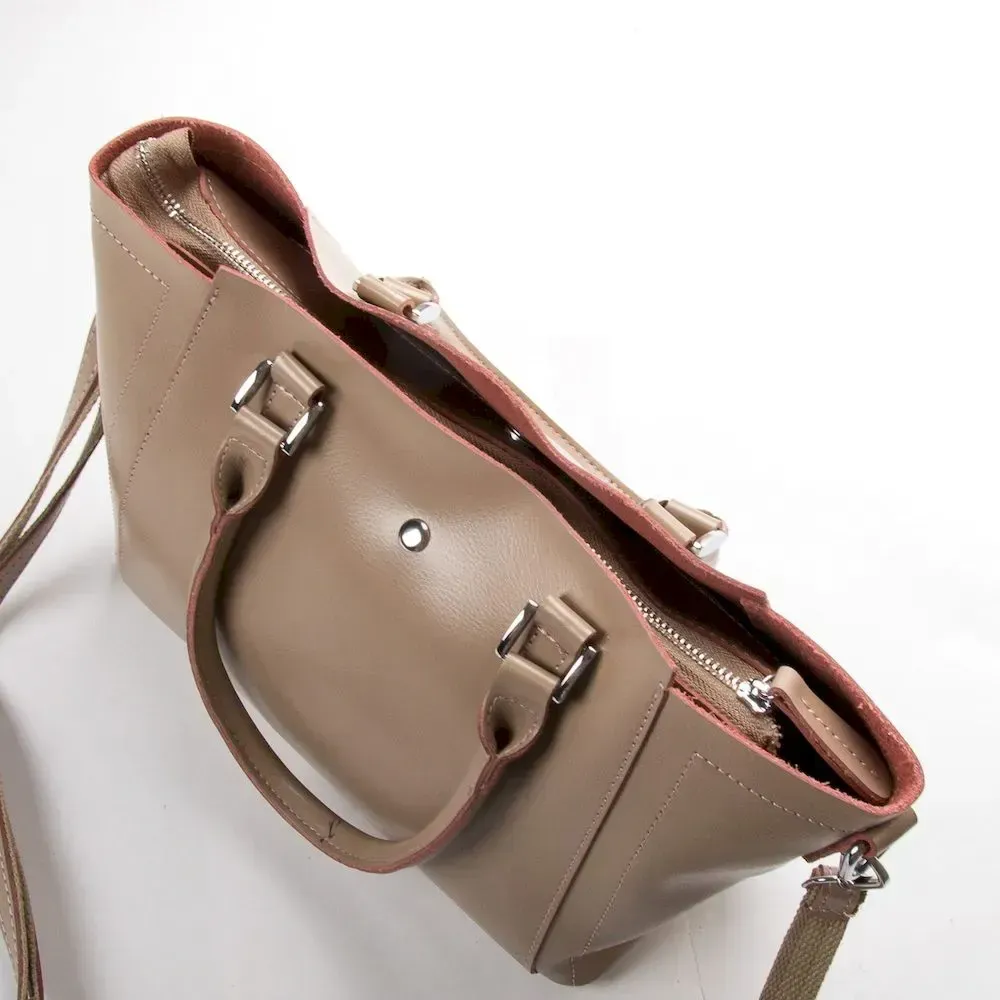 Женская сумка Alex Rai. Изготовлена из натуральной плотной кожи. Три отделения: центральное закрывается на молнию, а боковые на магнитные кнопки. Внутри центрального отделения есть двойной открытый карман и карман на молнии. Дно сумки жесткое, с металлическими ножками. В комплекте регулируемый плечевой ремень.