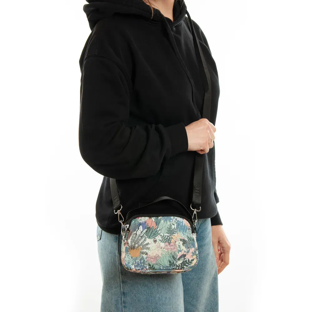 Закрывается на молнию. Внутри находится двойное отделение, разделенное карманом-перегородкой на молнии, открытый карман и боковой карман на молнии. Снаружи сумки на обратной стороне есть карман на молнии. Уплотненное дно на металлических ножках.