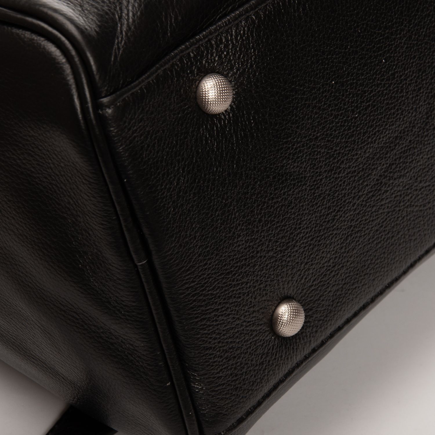 Закрывается на молнию. Внутри находится двойное отделение, разделенное карманом-перегородкой на молнии, открытый карман и боковой карман на молнии. Снаружи сумки на обратной стороне есть большой карман на молнии. Уплотненное дно на металлических ножках.