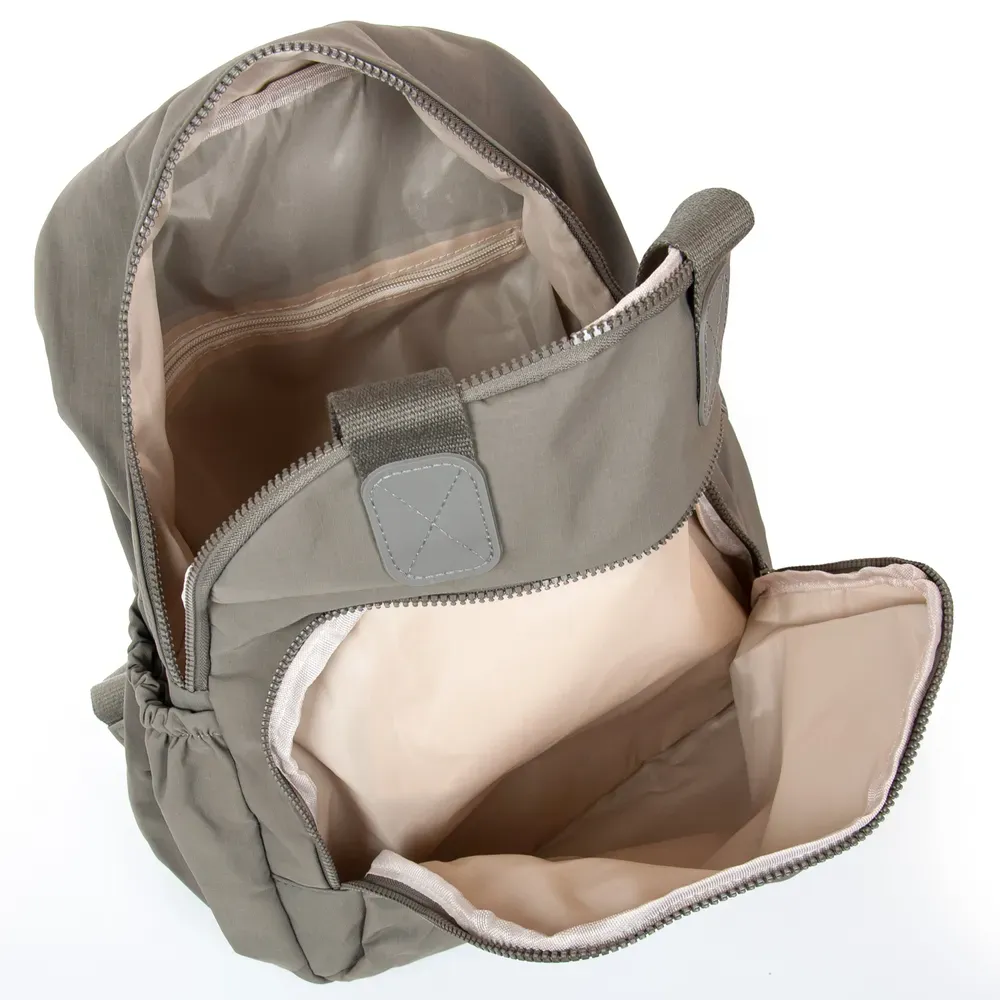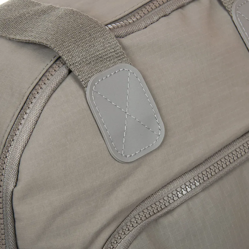 Закрывается на молнию. Внутри находится двойное отделение, разделенное карманом-перегородкой на молнии, открытый карман и боковой карман на молнии. Снаружи сумки на обратной стороне есть большой карман на молнии. Уплотненное дно на металлических ножках.