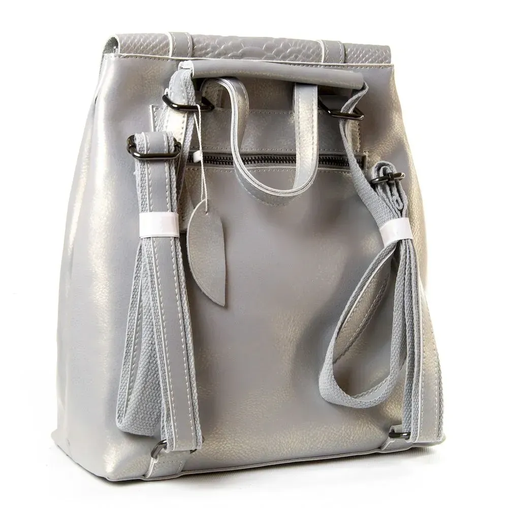 Закрывается на молнию. Внутри находится три отделения (среднее дополнительно закрывается на молнию), открытый карман и боковой карман на молнии. Снаружи сумки на фасаде есть карман под клапаном, а на обратной стороне карман на молнии.
