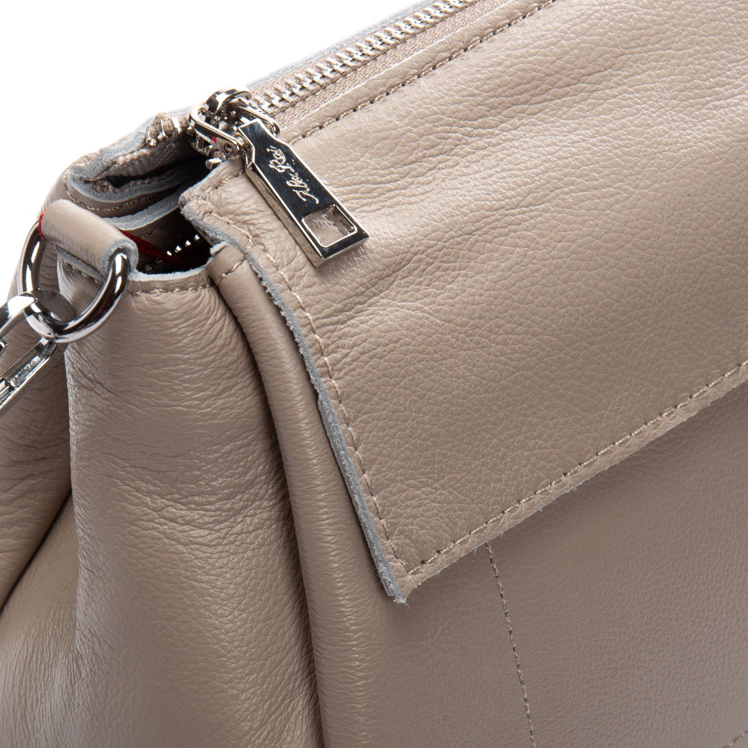 Закрывается на молнию. Внутри находится три отделения (среднее дополнительно закрывается на молнию), открытый карман и боковой карман на молнии. Снаружи сумки на фасаде есть карман под клапаном, а на обратной стороне карман на молнии.