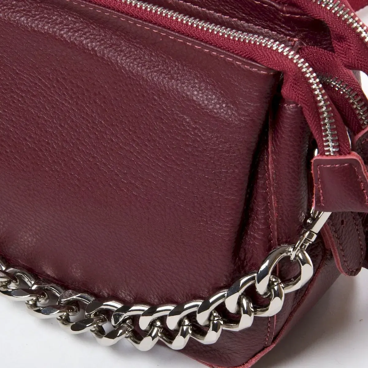 Женская сумочка Alex Rai. Изготовлена из натуральной мягкой кожи. Три отделения закрываются на молнию. Внутри центрального отделения находится открытый карман и боковой карман на молнии. Снаружи сумки на обратной стороне есть карман на молнии. В комплекте регулируемый плечевой ремень и сьемная ручка-цепочка.