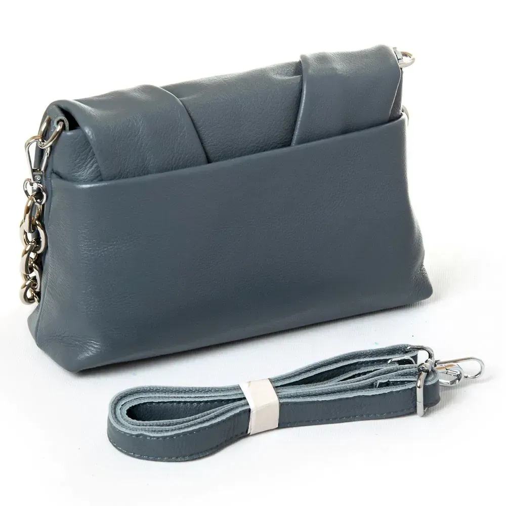 Женская сумочка Alex Rai. Изготовлена из натуральной мягкой кожи. Под клапаном дополнительно закрывается на молнию. Внутри находится двойное отделение, разделенное карманом-перегородкой на молнии, открытый карман и боковой карман на молнии. На обратной стороне расположен карман на магнитной кнопке. В комплекте регулируемый плечевой ремень и ручка-цепочка.