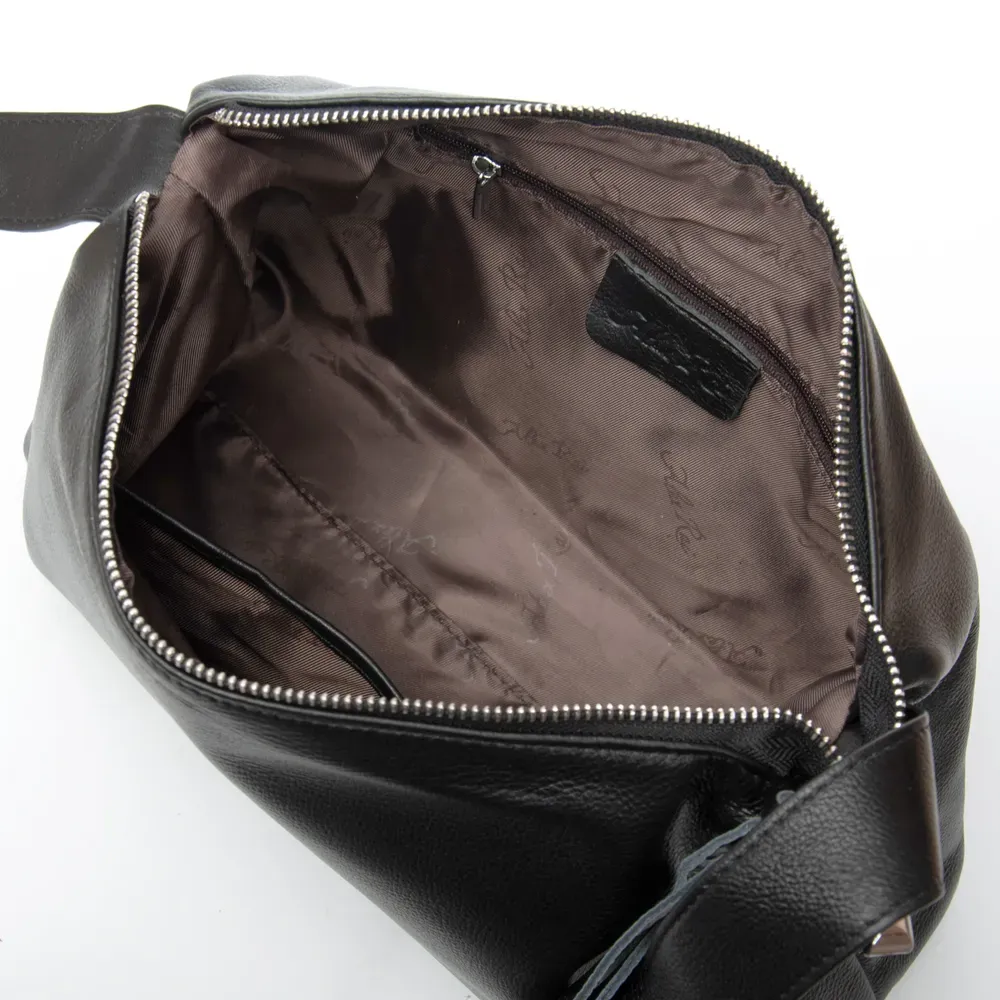 Закрывается на молнию. Внутри находится одно отделение, в котором есть карман на молнии и открытый карман. Снаружи сумки на обратной стороне расположен большой карман на молнии. Уплотненное дно.