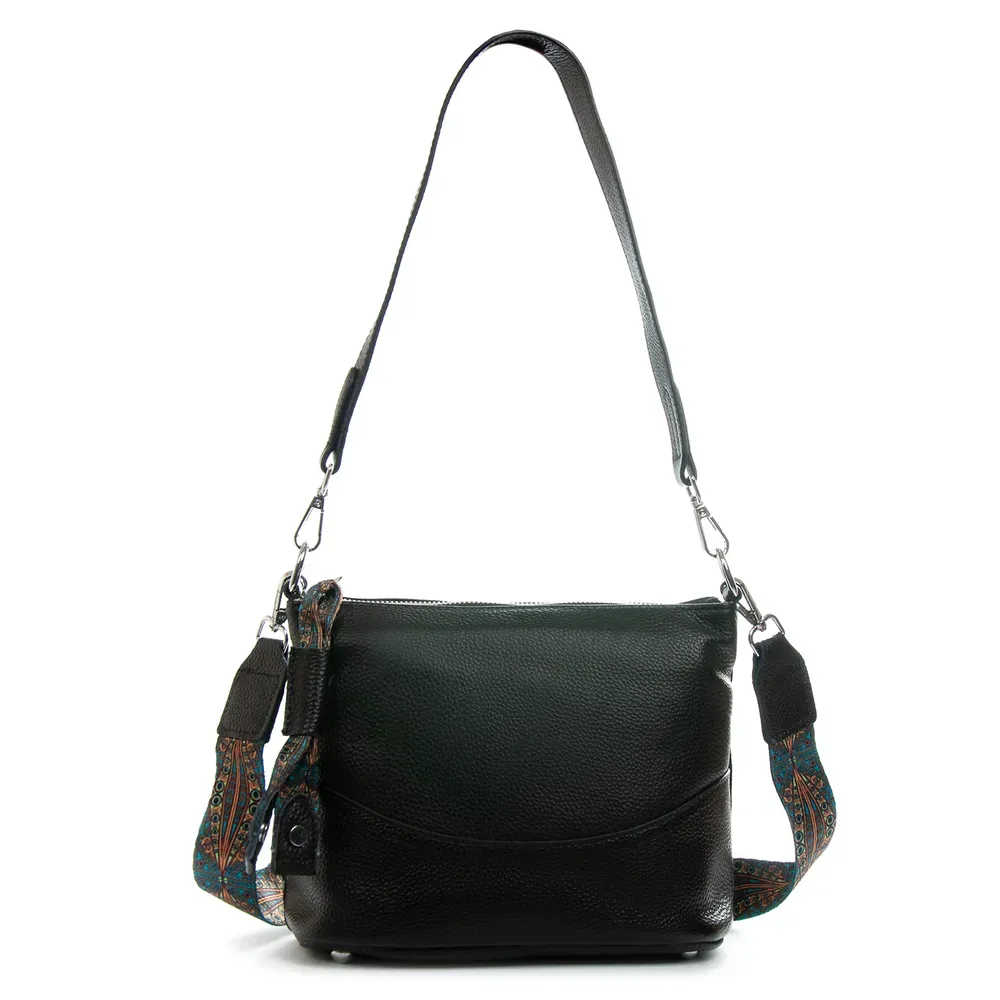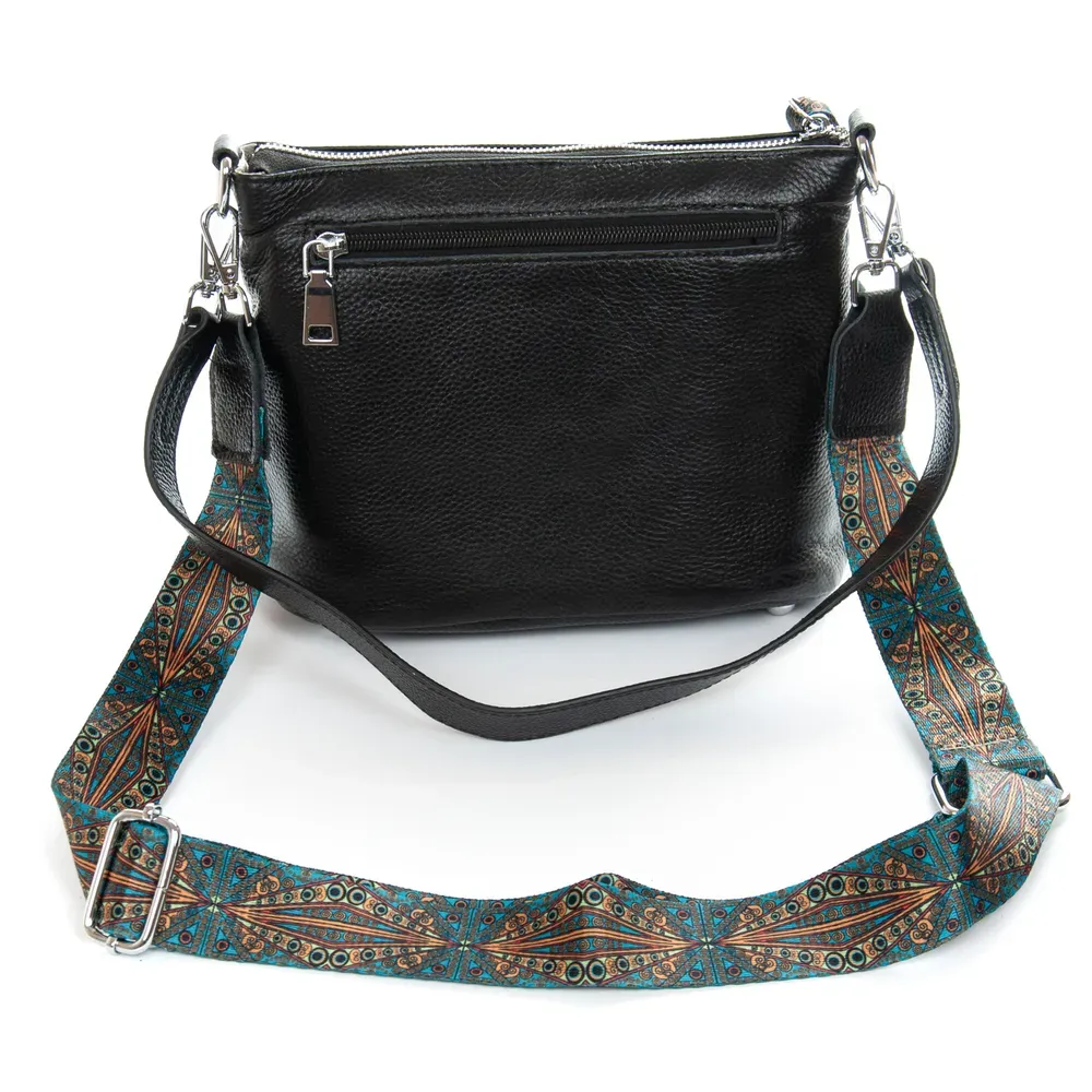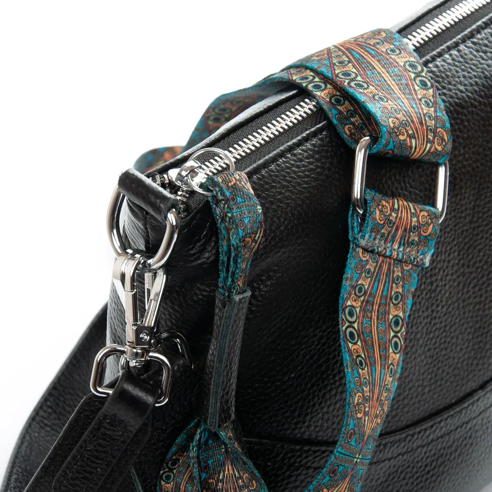В комплекте регулируемый широкий текстильный ремень-лента и сьемная ручка.