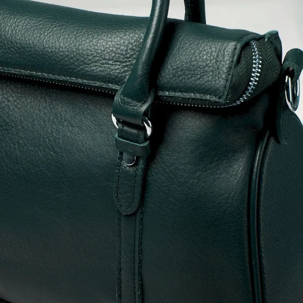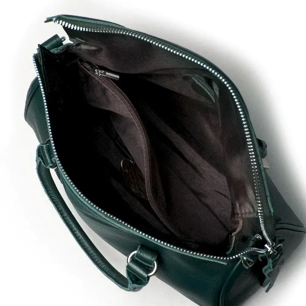 Женская сумка. Изготовлена из натуральной мягкой кожи. Закрывается на молнию. Внутри находится двойное отделение, разделенное карманом-перегородкой на молнии, открытый карман и боковой карман на молнии. На обратной стороне находится карман на молнии. В комплекте регулируемый плечевой ремень и широкий ремень.