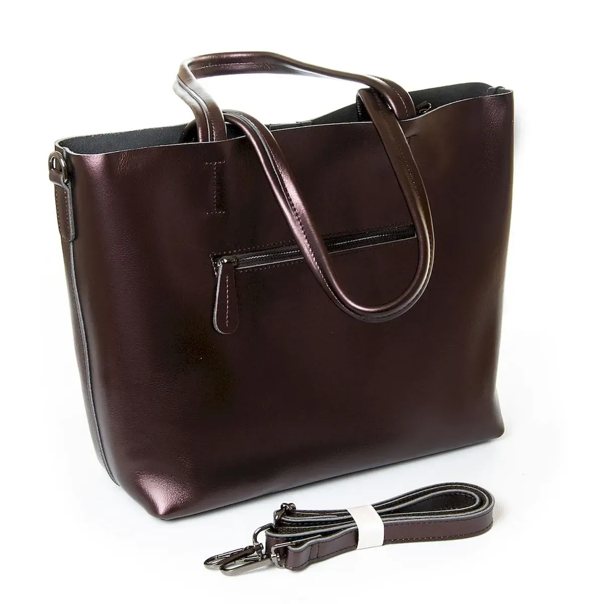 Женская сумка из натуральной кожи. Закрывается на молнию. Внутри сумки двойное отделение, разделенное карманом-перегородкой на молнии, боковой карман на молнии и открытый двойной карман. На обратной стороне сумки карман на молнии. В комплекте регулируемый плечевой ремень.