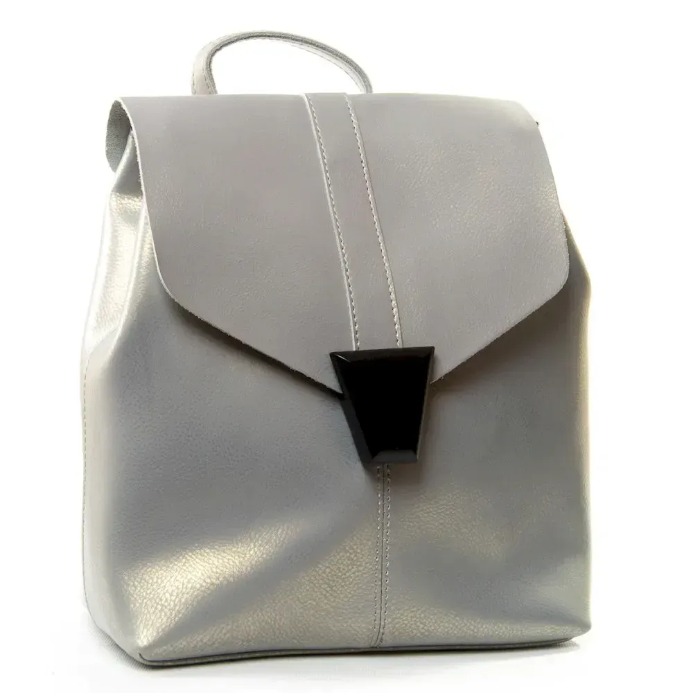 Женский кожаный рюкзак. Изготовлен из натуральной плотной кожи.. Можно носить на плече на регулируемом ремне. Под клапаном дополнительно закрывается на молнию. Внутри находится основное и дополнительное отделение, разделенное карманом-перегородкой на молнии, двойной открытый карман и карман на молнии. Снаружи рюкзака на обратной стороне расположен карман на молнии. Плечевые лямки регулируются по длине.