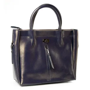 Женская сумка. Изготовлена из натуральной кожи. Закрывается на молнию. Внутри находится двойное отделение, разделенное карманом-перегородкой на молнии, двойной открытый карман и карман на молнии на внутренних стенках сумки. На обратной и лицевой стороне есть карманы на молнии. Сумка имеет жесткое дно. В комплекте регулируемый плечевой ремень.
