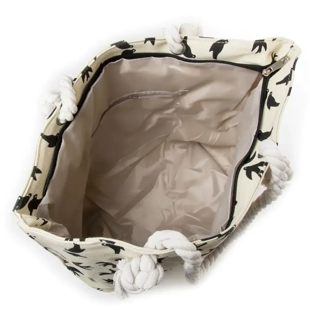 Пляжная сумка с принтом. Одно отделение, закрывается на молнию. Внутри отделения есть боковой карман на молнии.