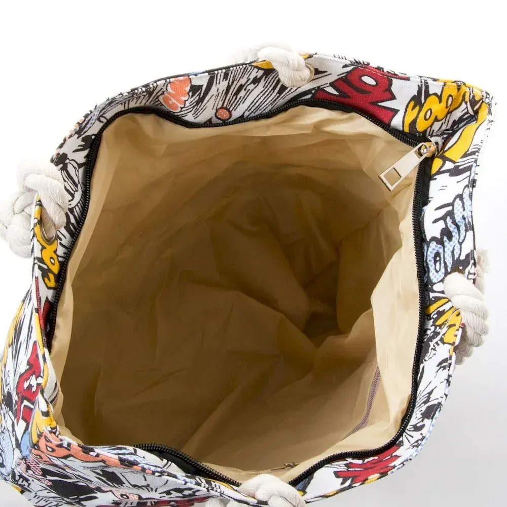 Пляжная сумка с принтом. Одно отделение, закрывается на молнию. Внутри отделения есть боковой карман на молнии.