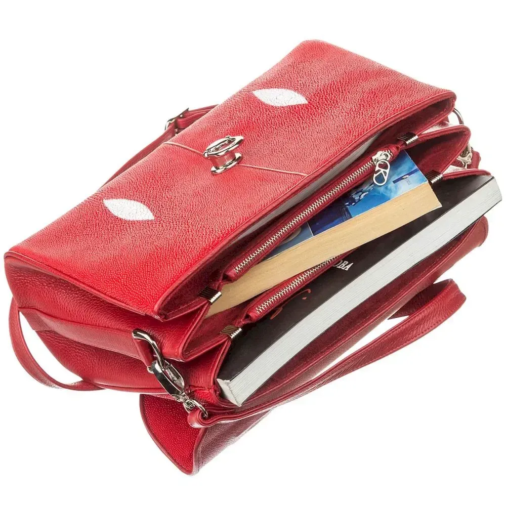 Сумка женская STINGRAY LEATHER 18609 из натуральной кожи морского ската Красная