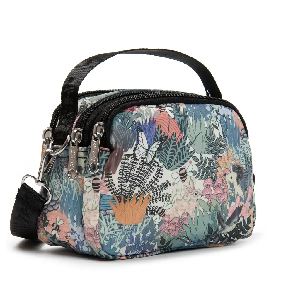 Изготовлена из водоотталкивающего плотного текстиля. Два отделения, закрываются на молнии. Внутри одного из отделений находится боковой карман на молнии. На фасаде расположен один вместительный карман на молнии.
