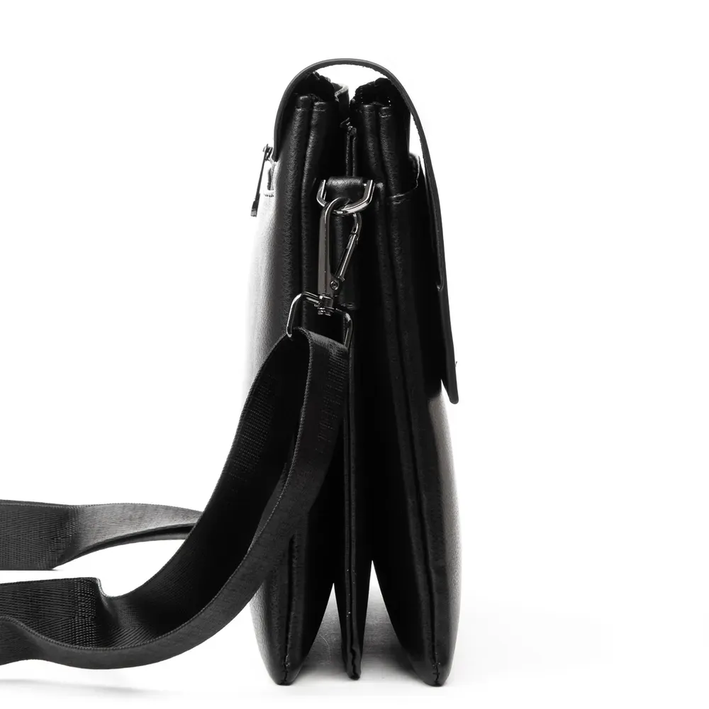 Изготовлена из водоотталкивающего плотного текстиля. Закрывается на молнию. Внутри находится основное и дополнительное отделения, разделенные карманом-перегородкой на молнии и большой боковой карман на молнии. На фасаде находятся четыре кармана на молнии, а на обратной стороне один карман. На торцах сумки есть небольшие открытые карманы