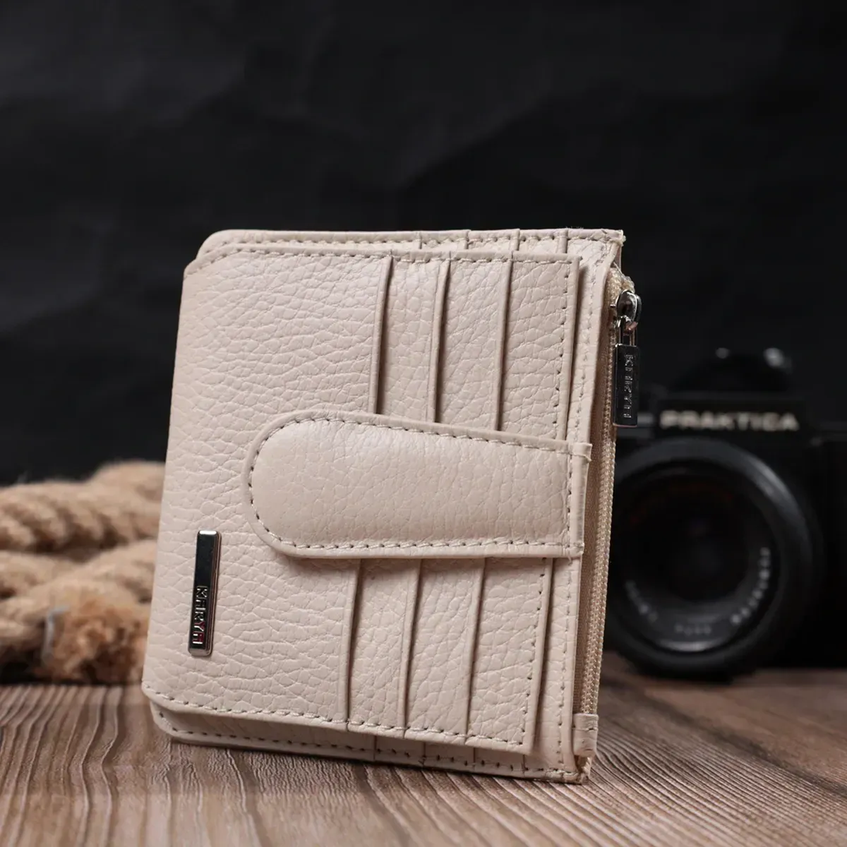 Превосходный компактный женский кошелек-картхолдер из натуральной кожи высокого качества. Небольшой кожаный кошелек поместится даже в самую маленькую сумочку. Закрывается модель в два сложения хлястиком на кнопку. Такой кошелек, однозначно, порадует любую женщину.