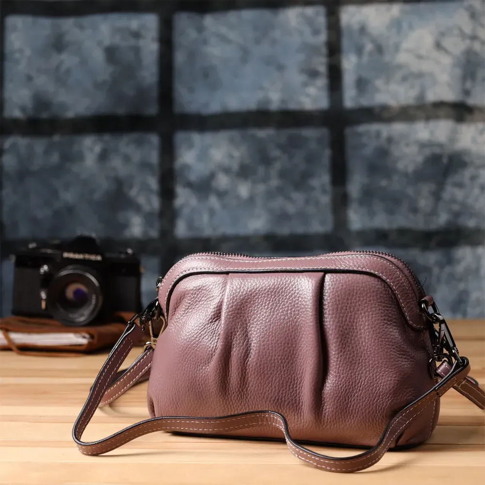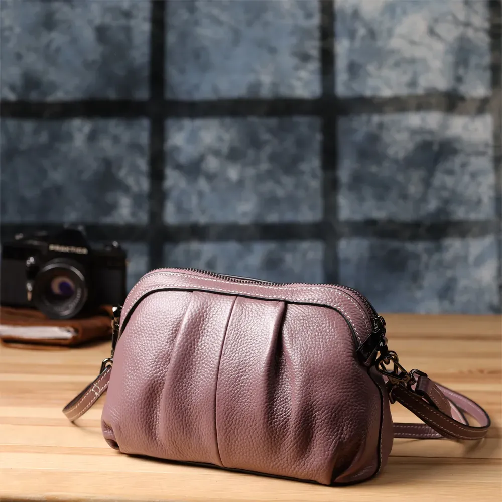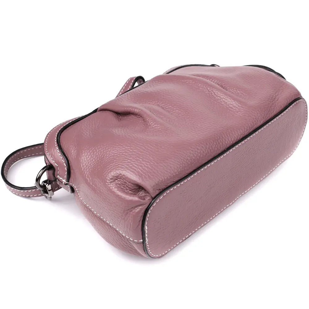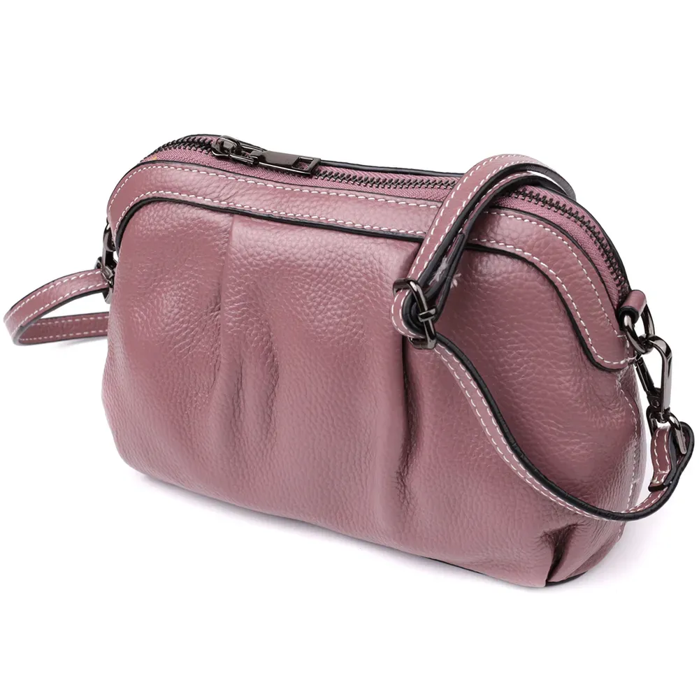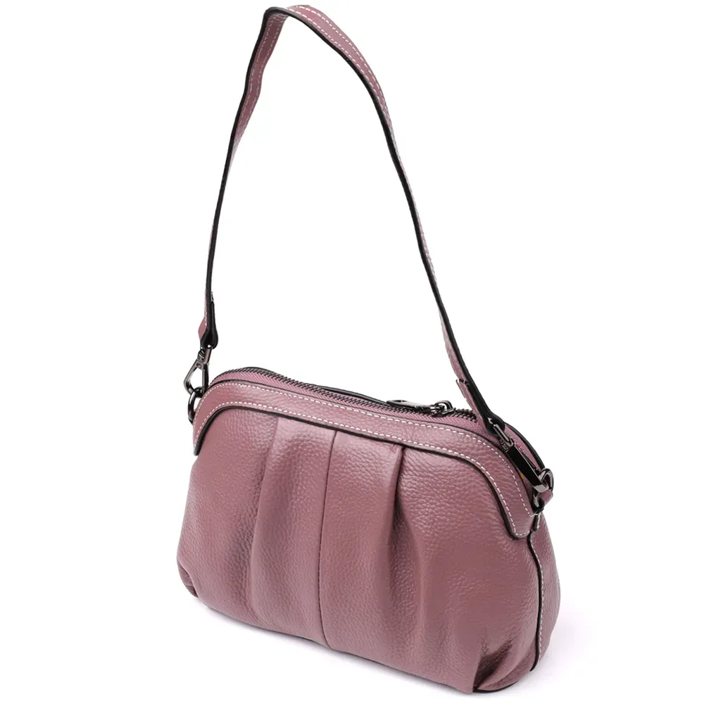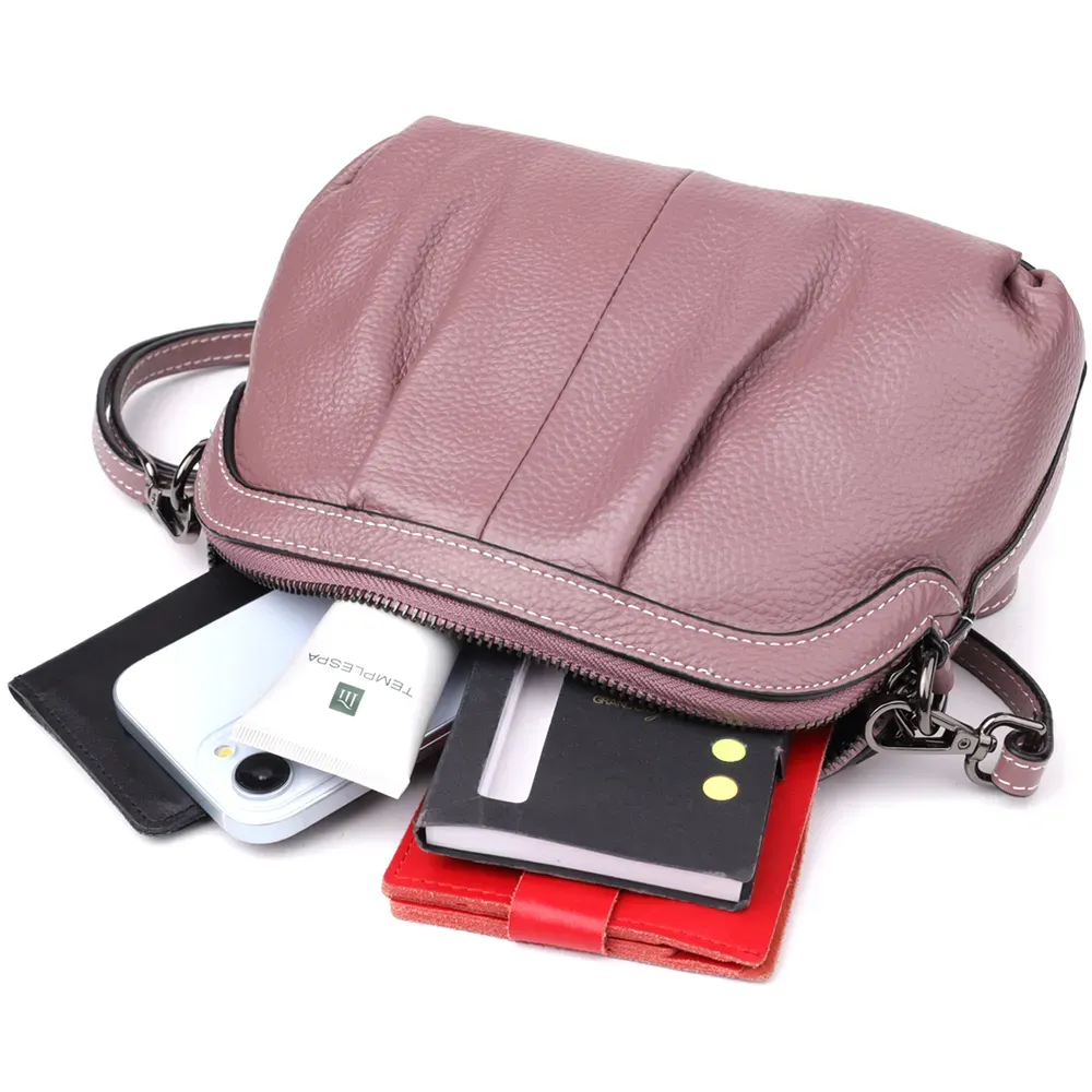 Цікава жіноча шкіряна сумка з ефектним драпіруванням Vintage 22898 Пурпурний