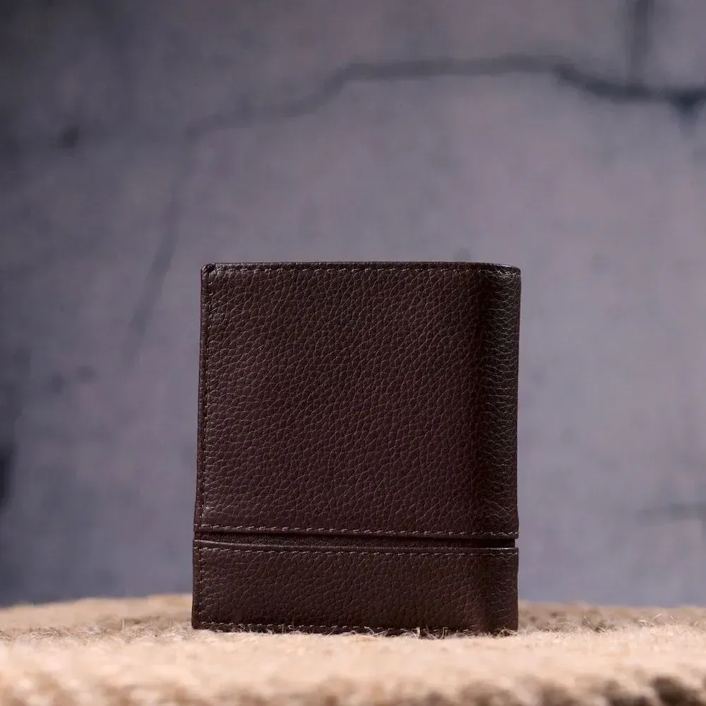 Вместительный мужской кошелек, из натуральной кожи, в красивом коричневом цвете. Внутри находится два отделения для купюр, шесть отделений для карт, три скрытых кармана и монетница на кнопке. Закрывается кошелек в два сложения без застежки. Изделия из натуральной кожи всегда будут отличным подарком для близкого человека.