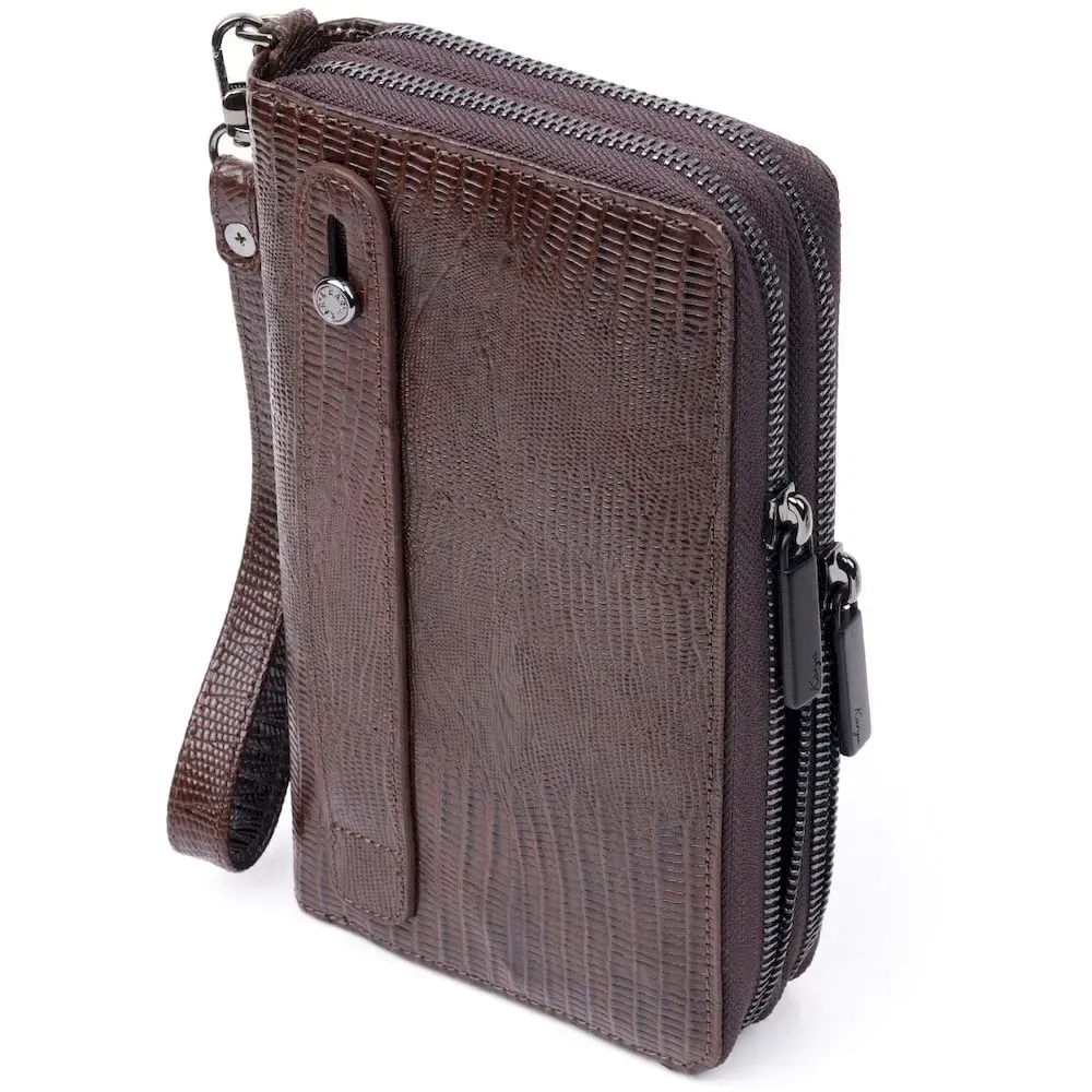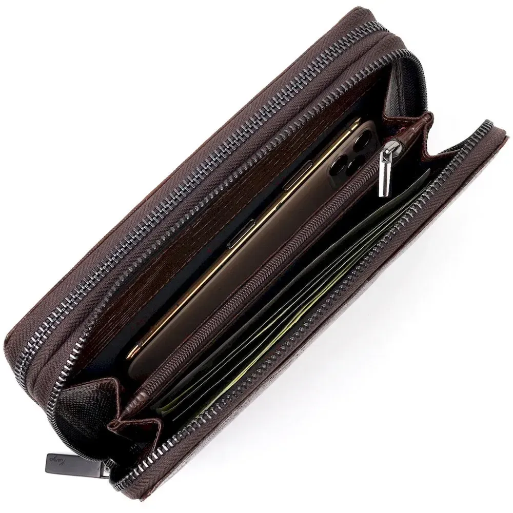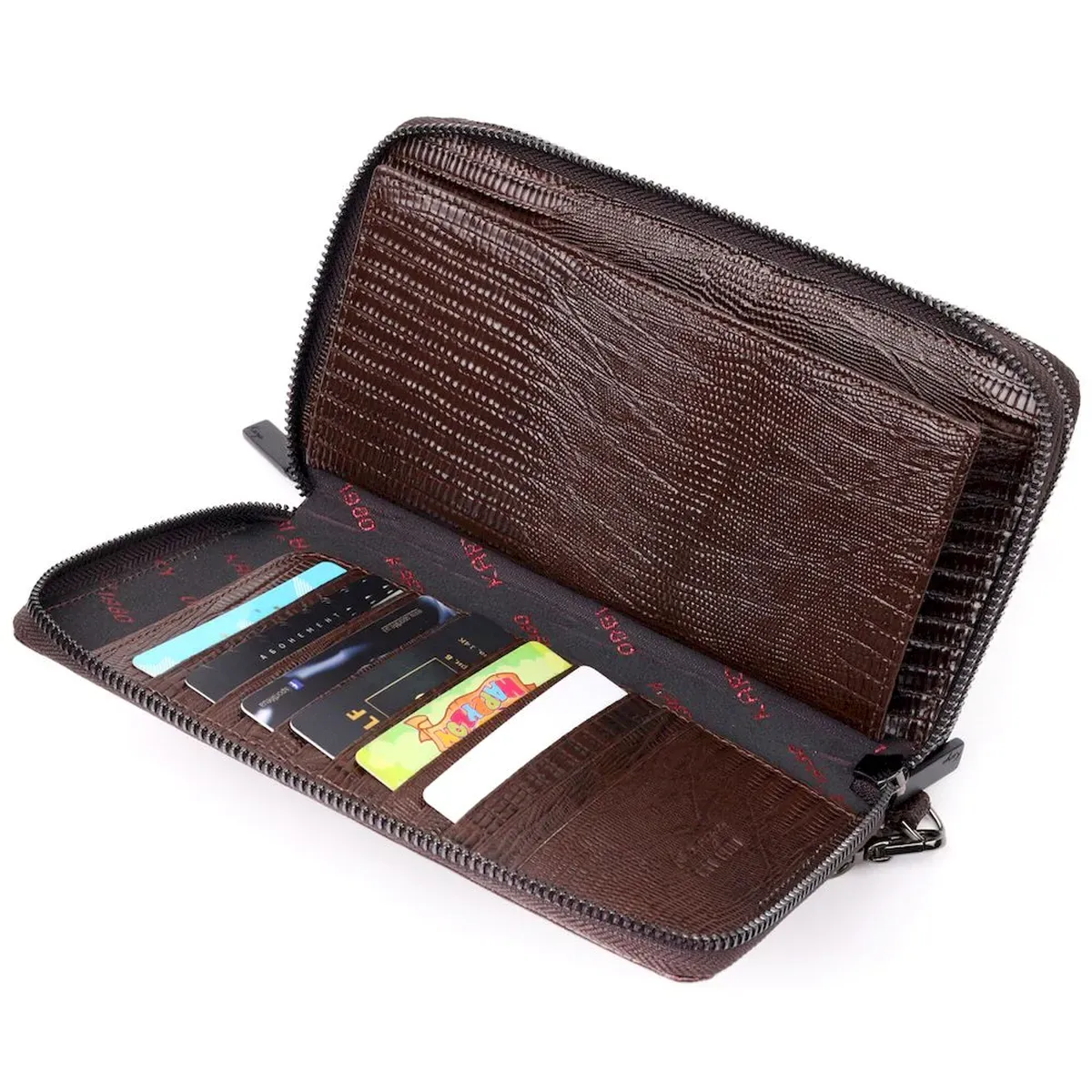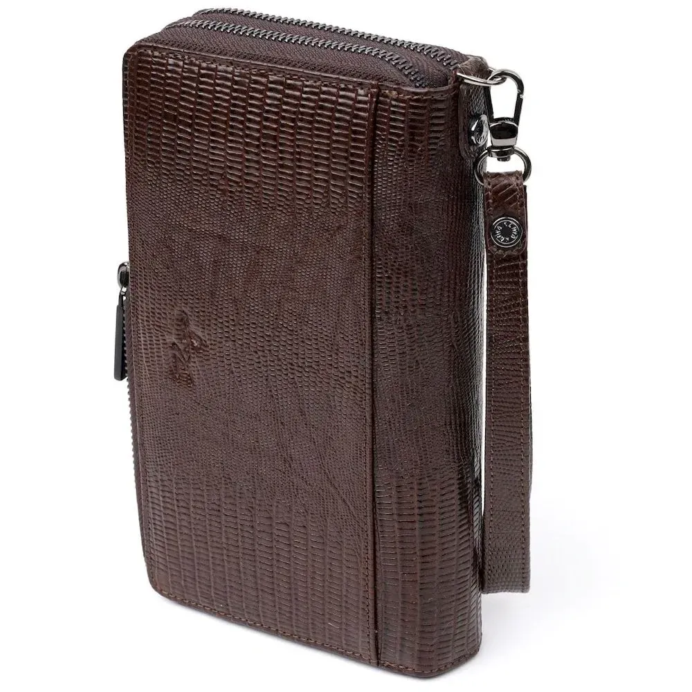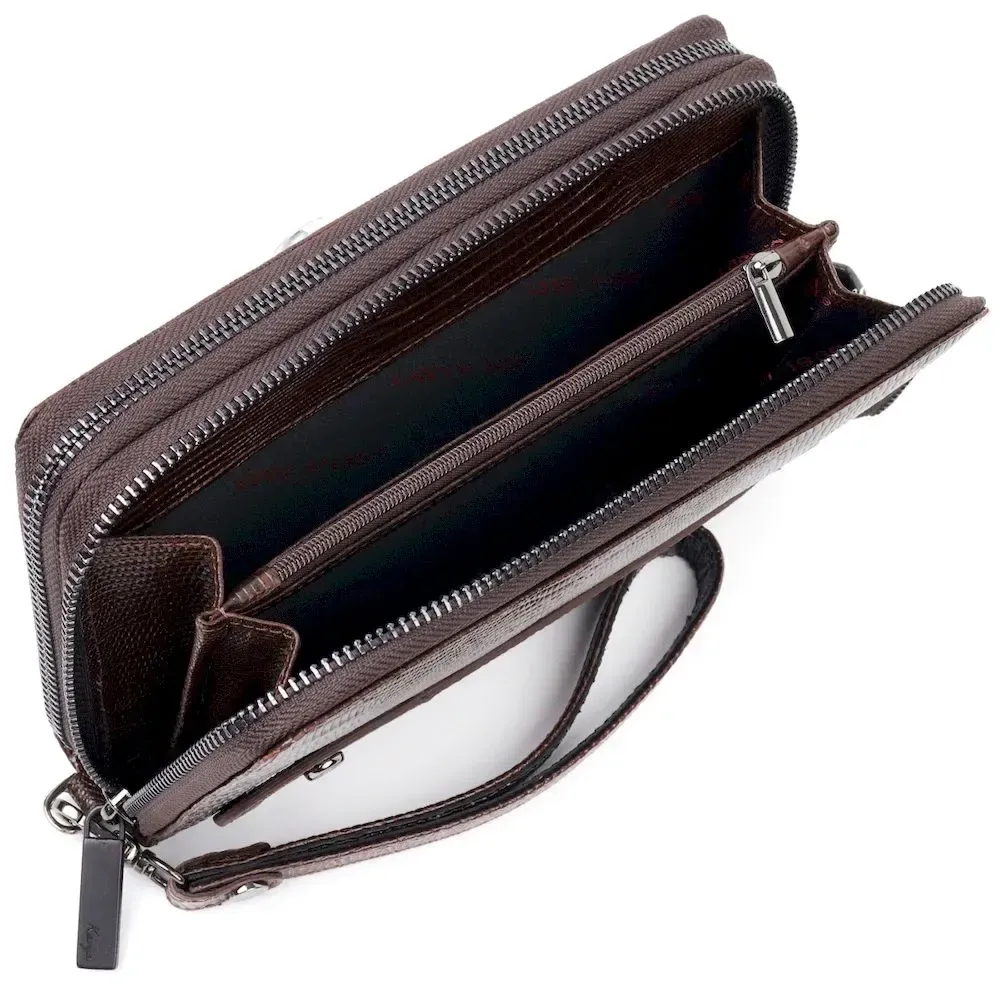 Удобный мужской клатч из фактурной кожи KARYA 20851 Коричневый