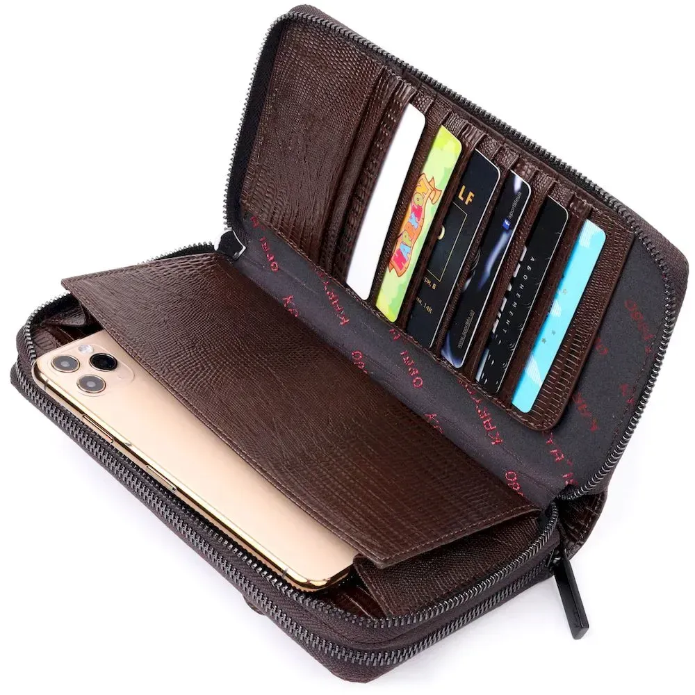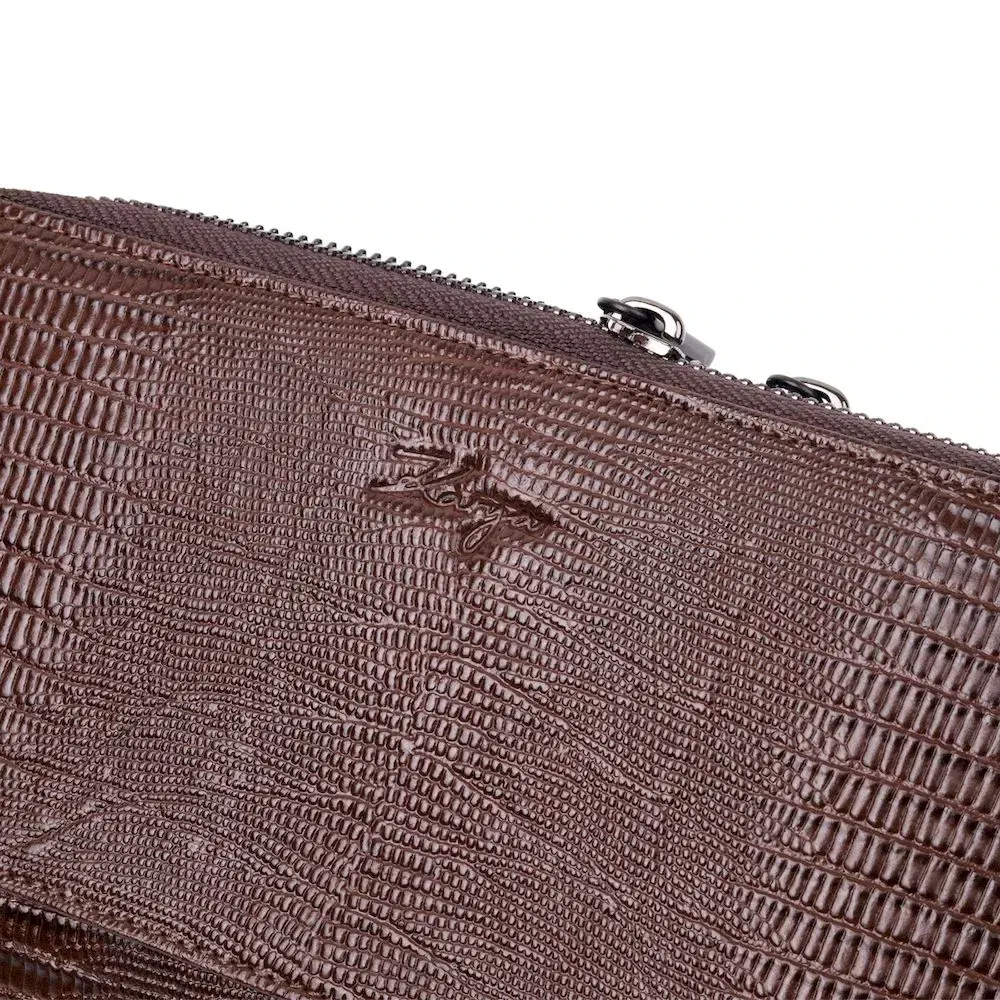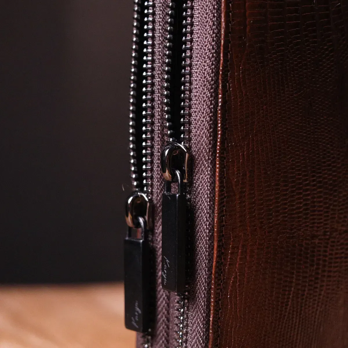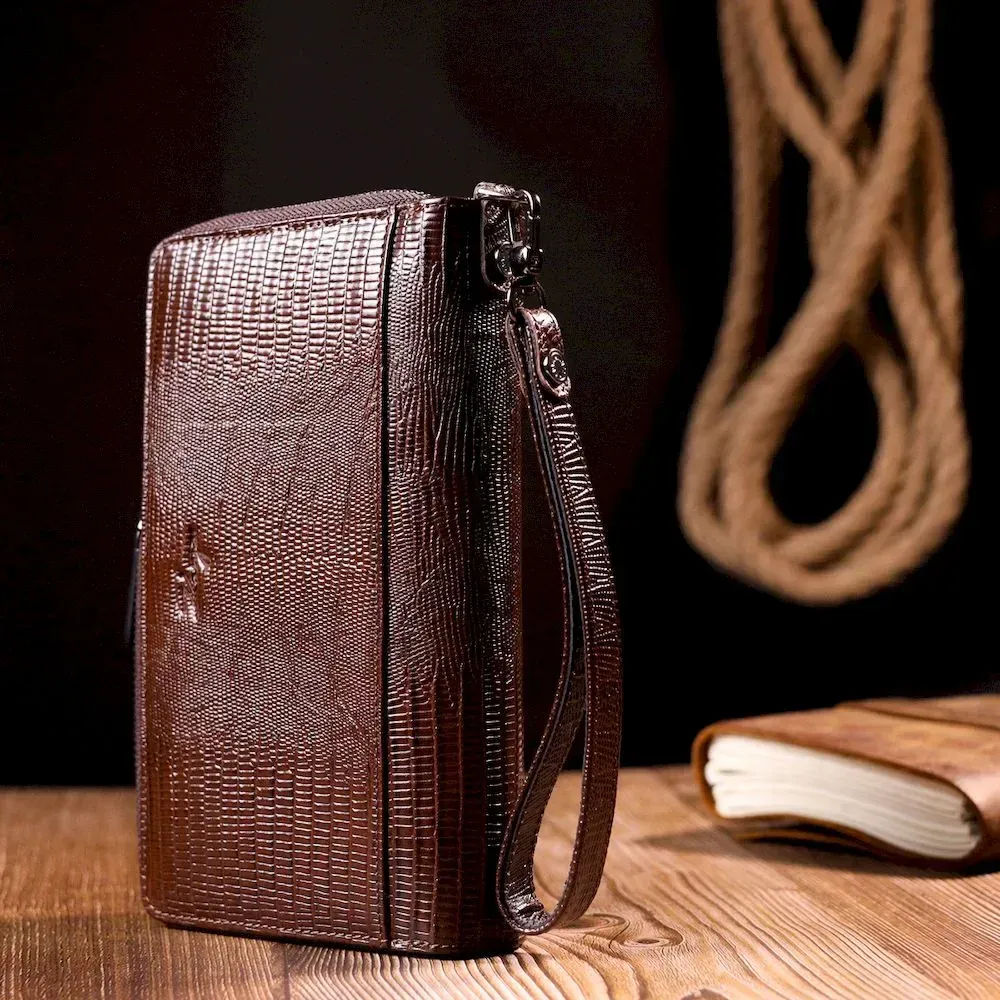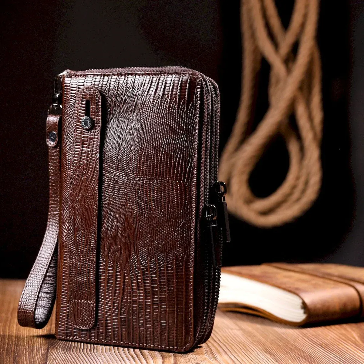 Удобный мужской клатч из фактурной кожи KARYA 20851 Коричневый