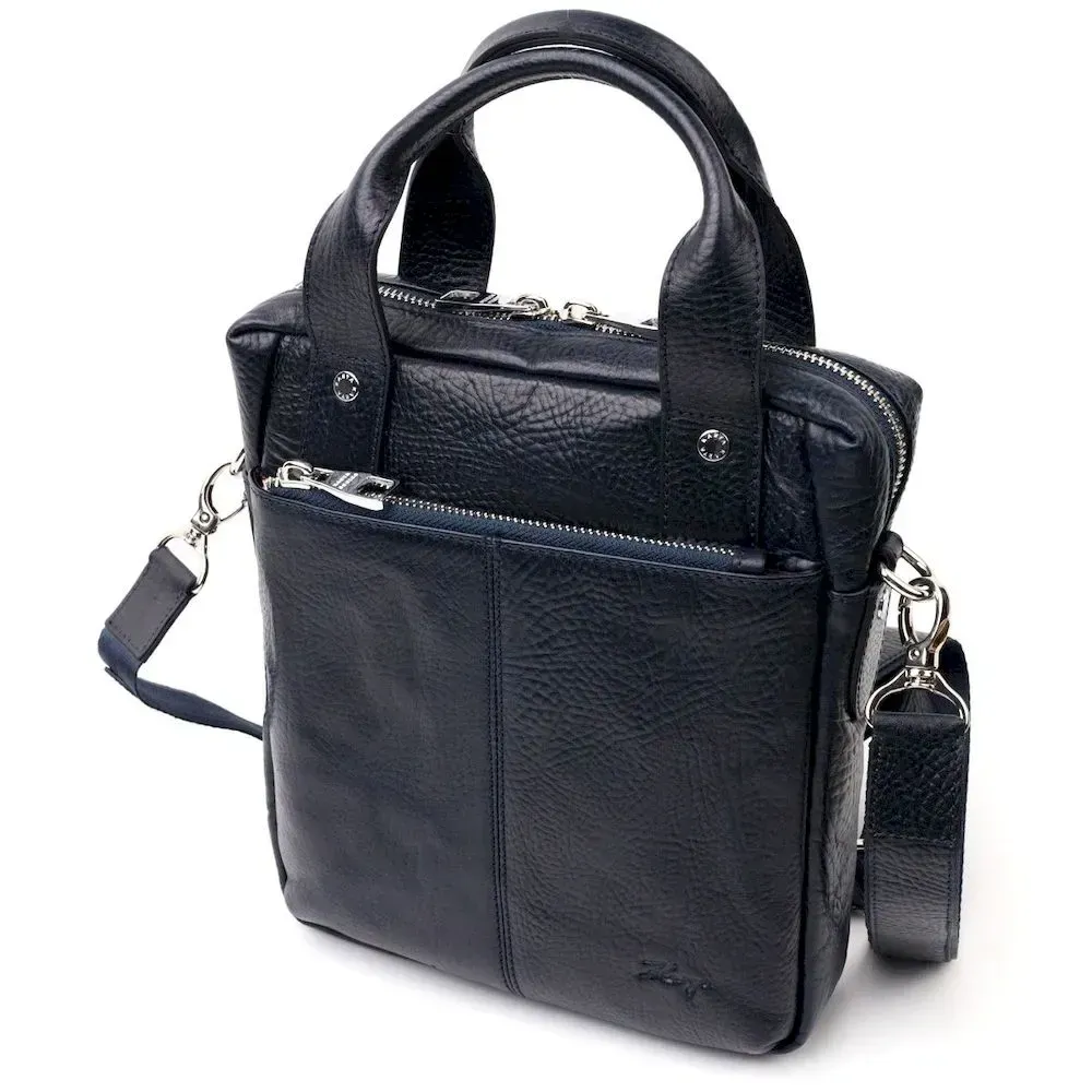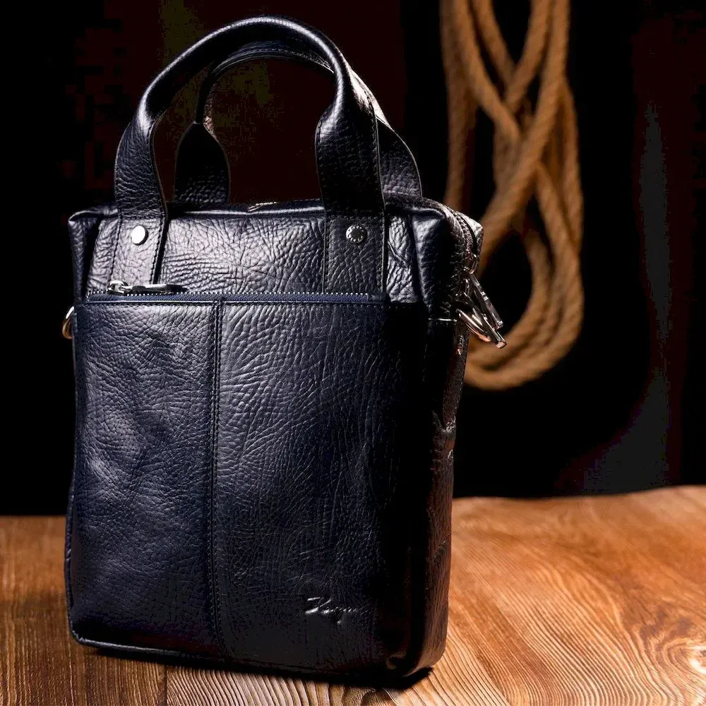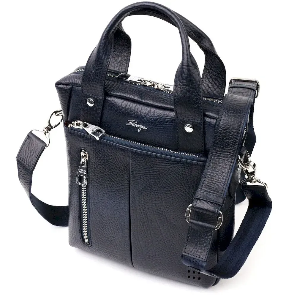 Удобный мужской мессенджер KARYA 20870 кожаный Синий