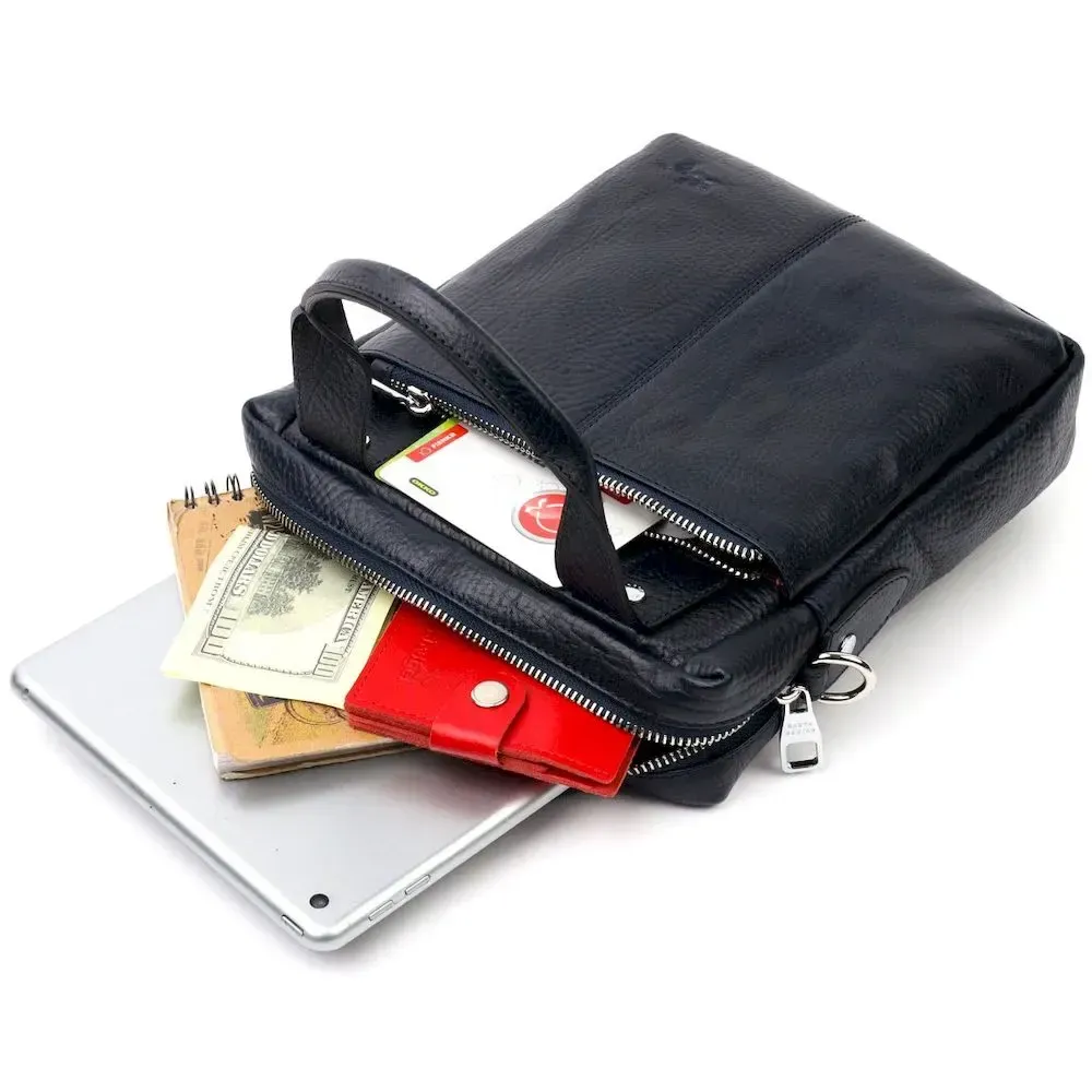 Отличная сумка из натуральной кожи для стильных мужчин. Удобная и многофункциональная модель. Отличный вариант на каждый день. Кожа флотар устойчива к износам и долго носится. На ней не видно царапин и выглядит она очень эффектно. Модель дополнена фурнитурой цвета серебра внутри качественная подкладка. Кожаная качественная сумка всегда считалась идеальным вариантом подарка близкому человеку.