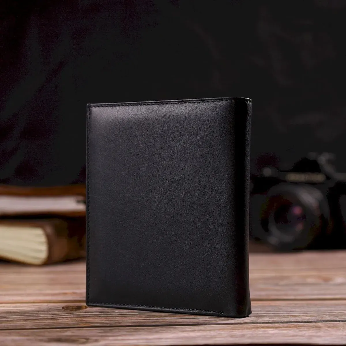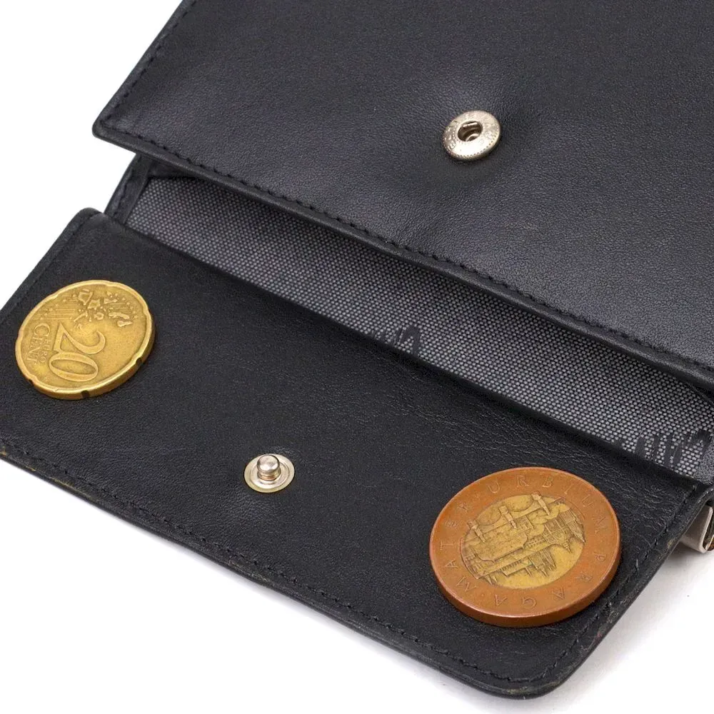 Сдержанный женский кошелек среднего размера из натуральной гладкой кожи. Аксессуар имеет одно основное отделение с тканевой перегородкой в которое помещаются купюры всех номиналов, пять карманов для карточек (один под сеточкой), два скрытых кармана и монетницу. Закрывается аксессуар в два сложения на кнопку. Приобретая кожаный аксессуар этой фирмы, себе или на подарок, будьте уверены, что он прослужит Вам не один год.