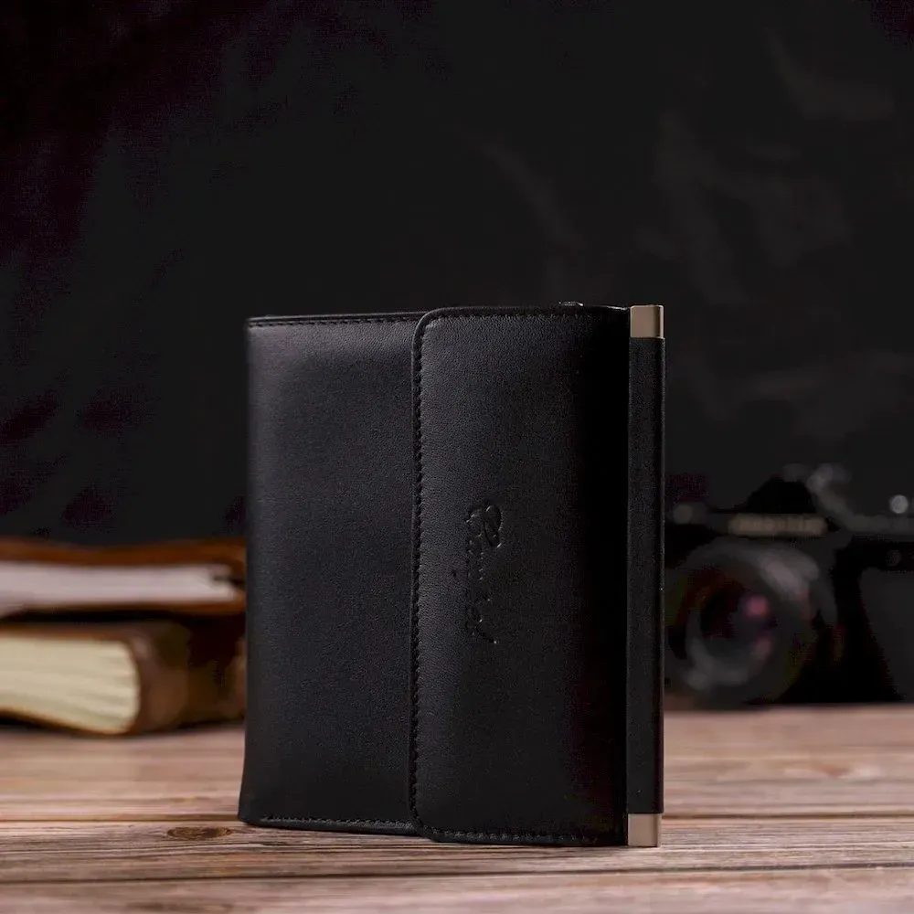 Ультрамодный кошелек для женщин из натуральной гладкой кожи CANPELLINI 21928 Черный