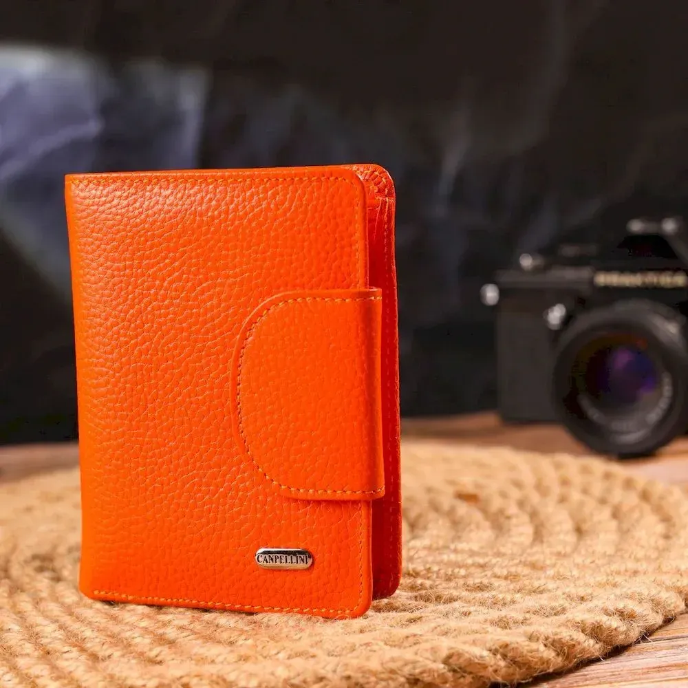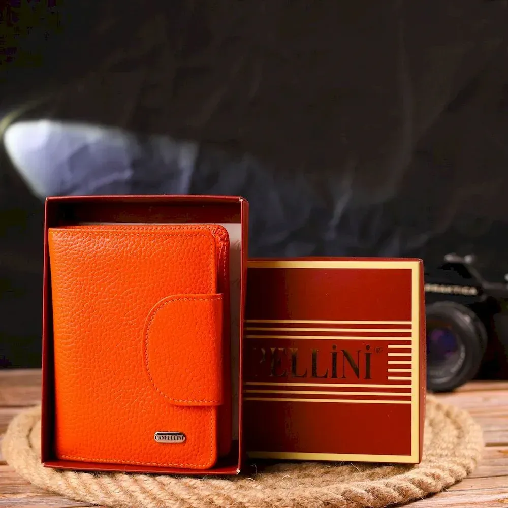 Уникальный вертикальный кошелек из натуральной кожи CANPELLINI 21680 Оранжевый