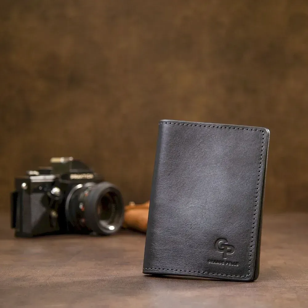 Универсальная кожаная обложка на паспорт GRANDE PELLE 11479 Темно-синий