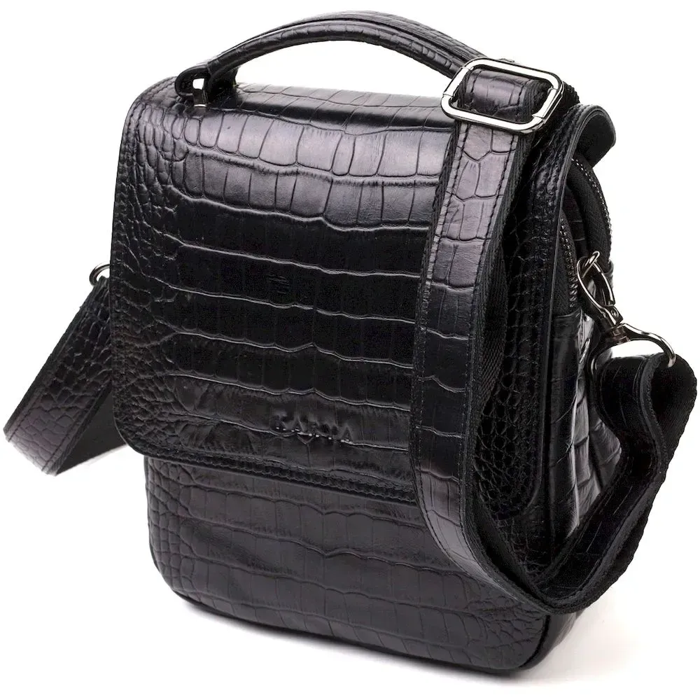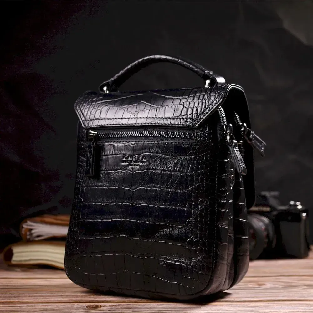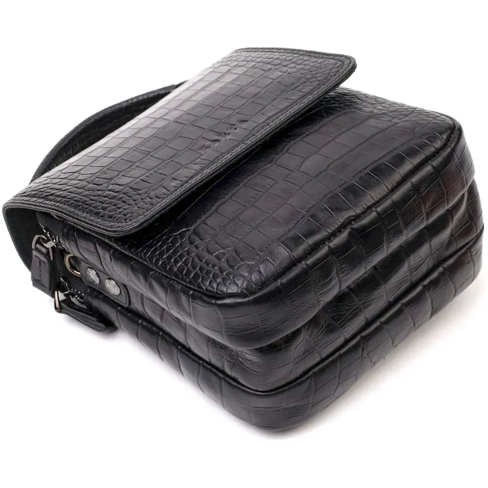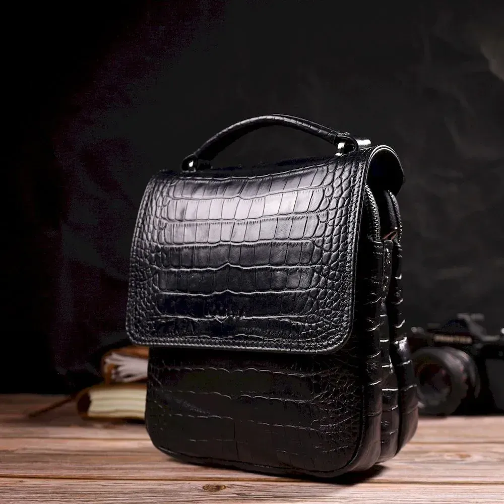 Вертикальная мужская сумка из натуральной кожи с тиснением под крокодила KARYA 21945 Черный