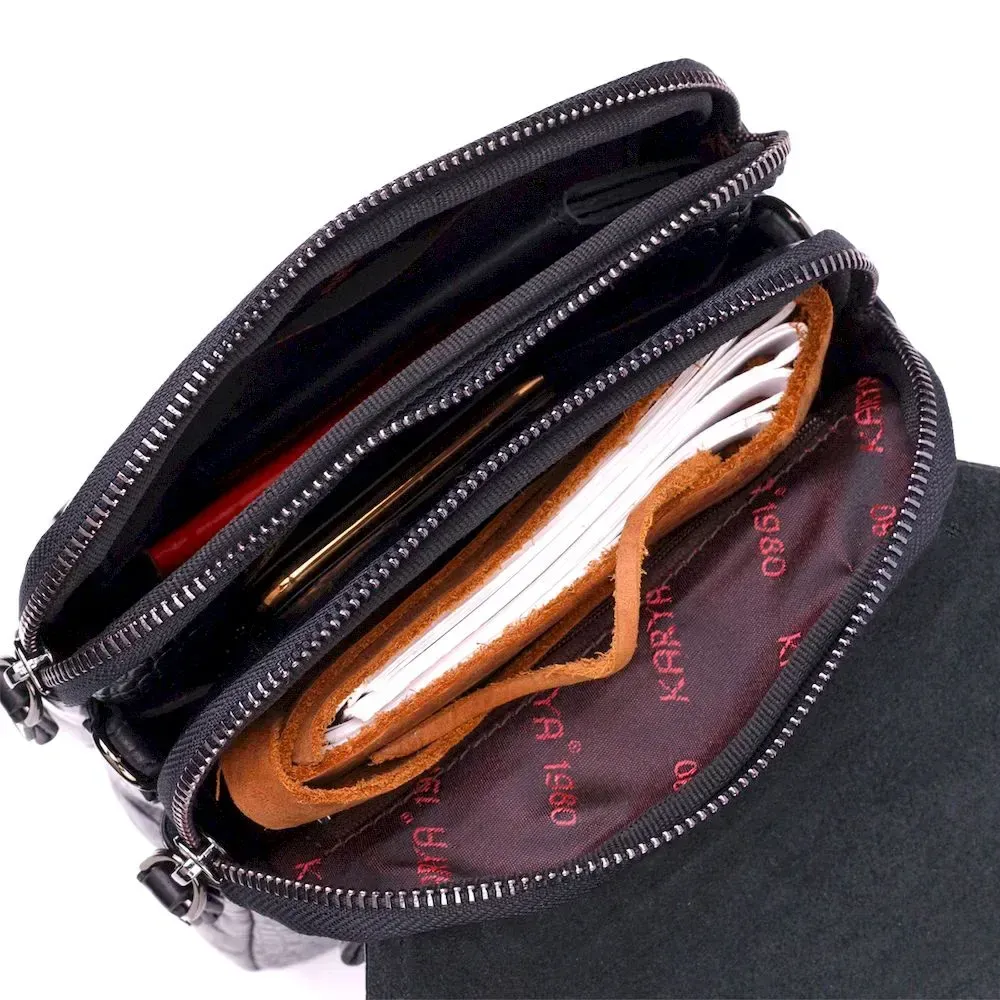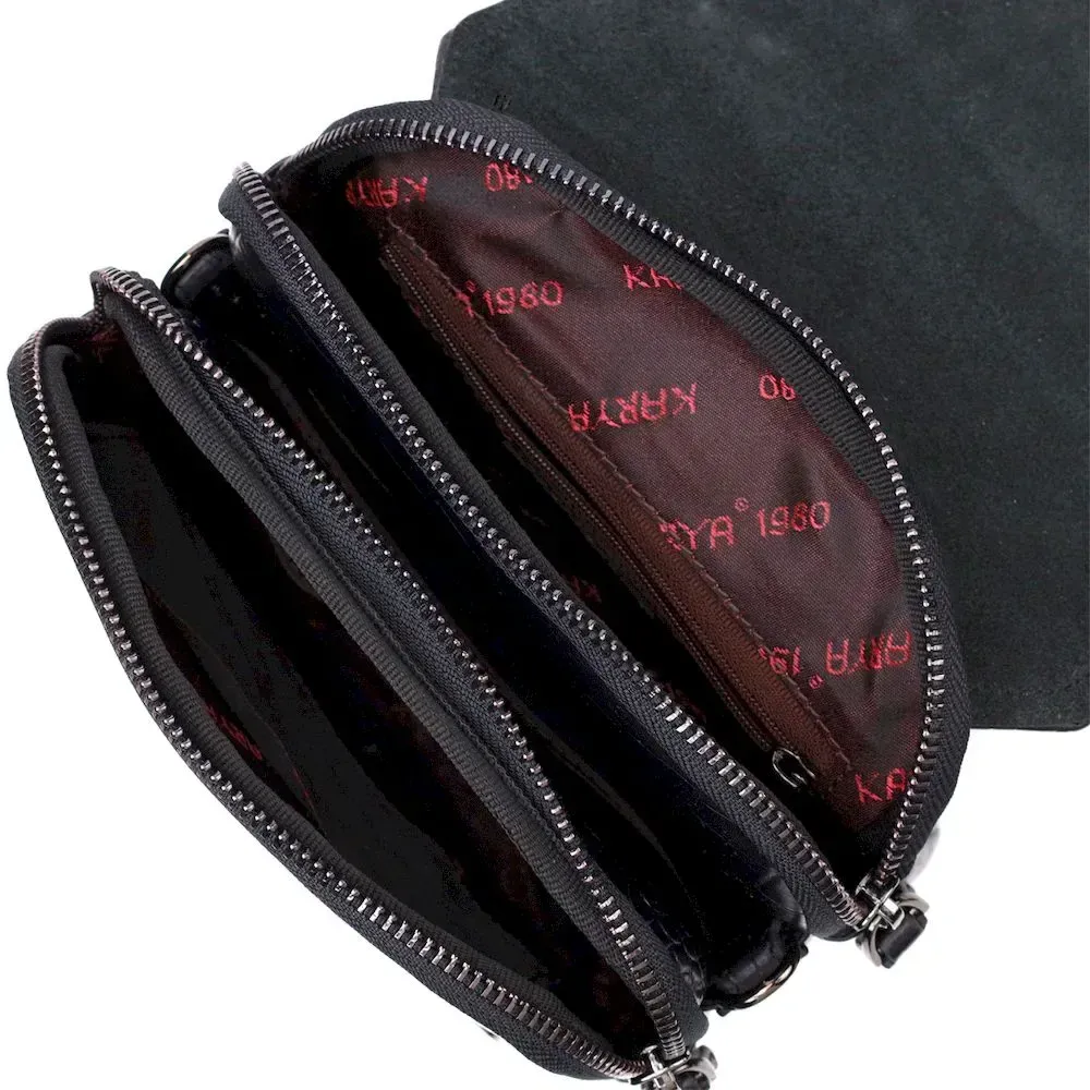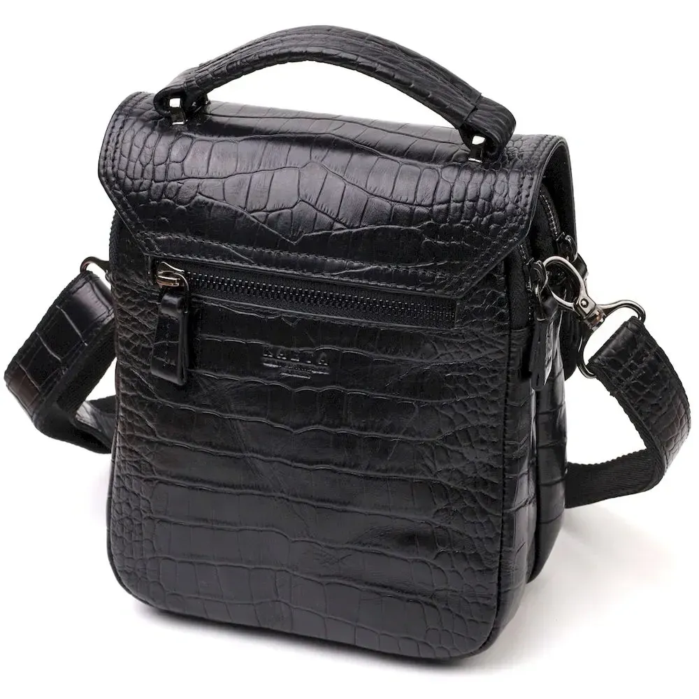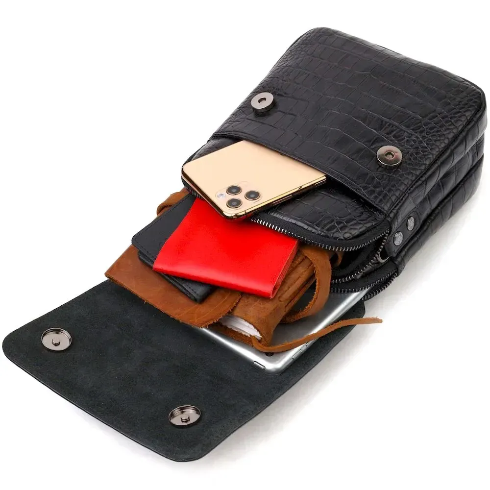 Вертикальная мужская сумка из натуральной кожи с тиснением под крокодила KARYA 21945 Черный