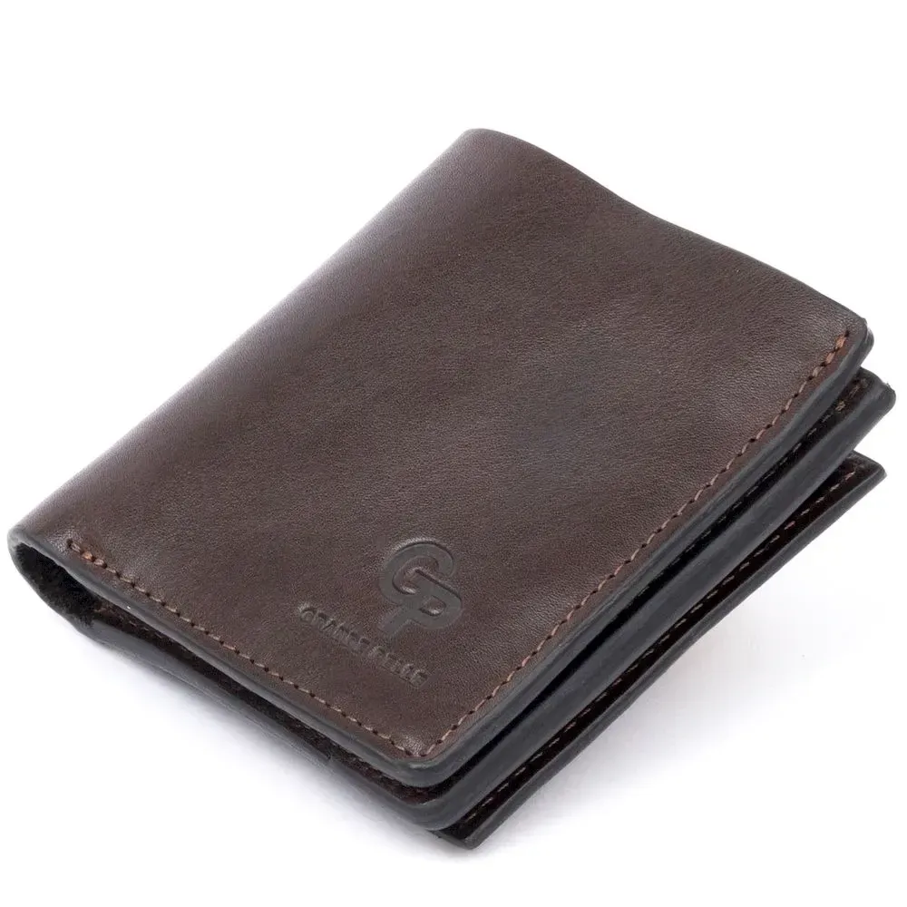 Вертикальное глянцевое портмоне с накладной монетницей GRANDE PELLE 11330 Шоколадное
