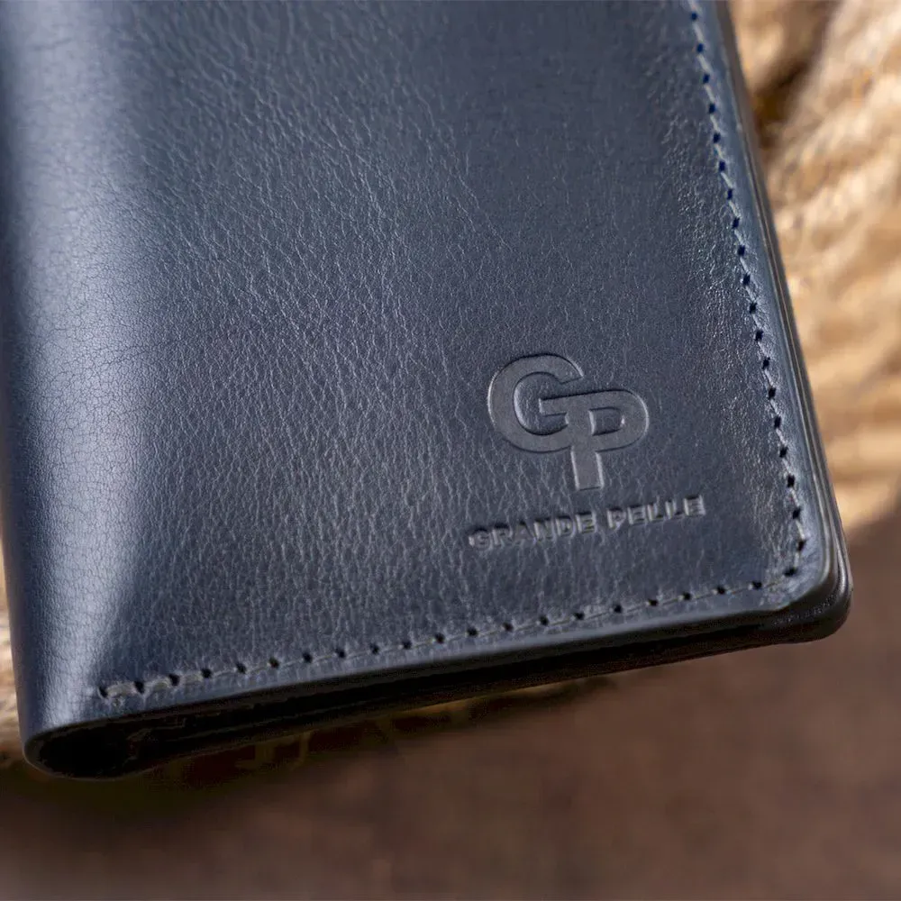 Вертикальное глянцевое портмоне с накладной монетницей GRANDE PELLE 11332 Синее