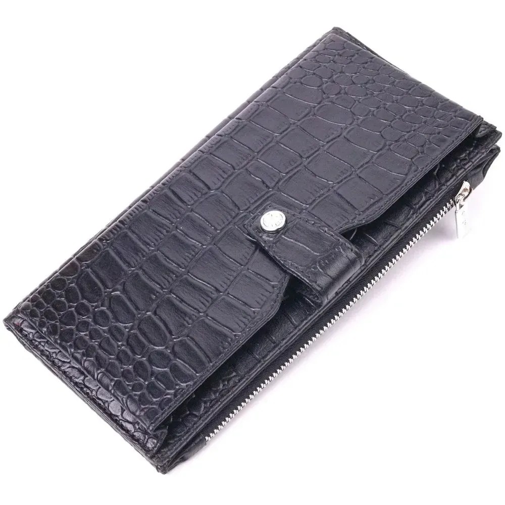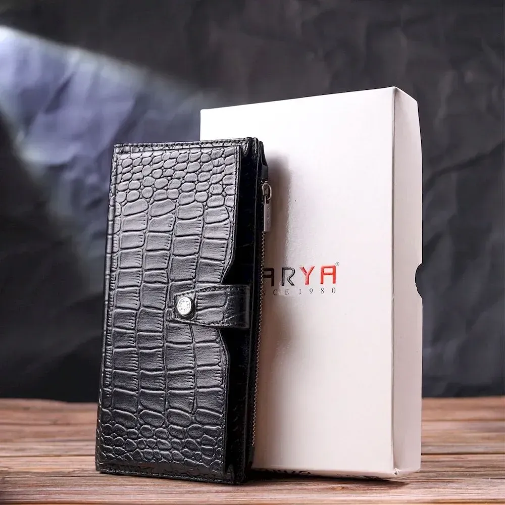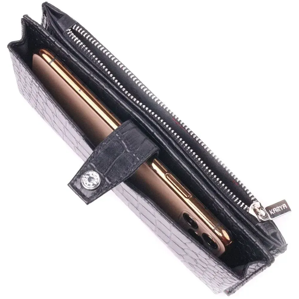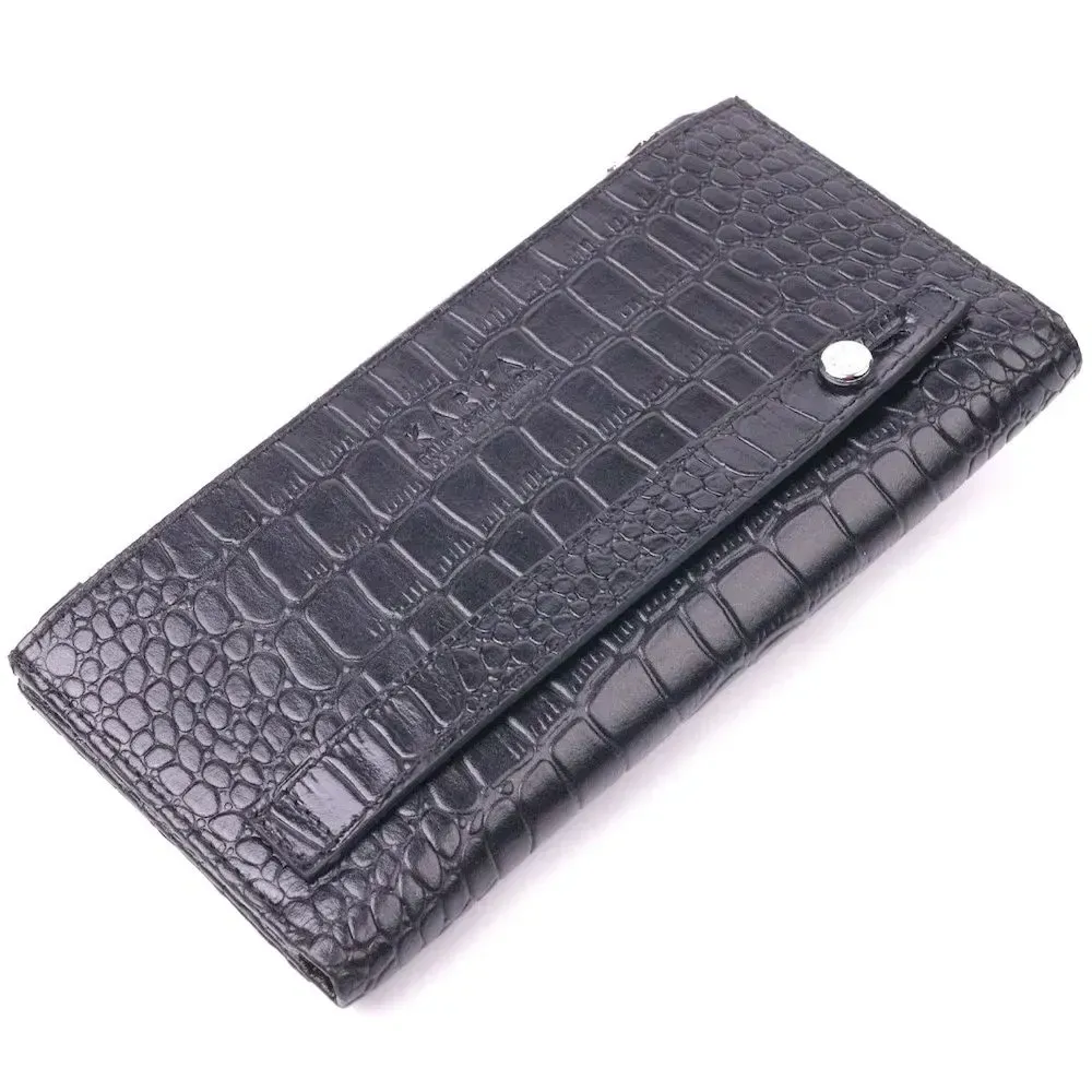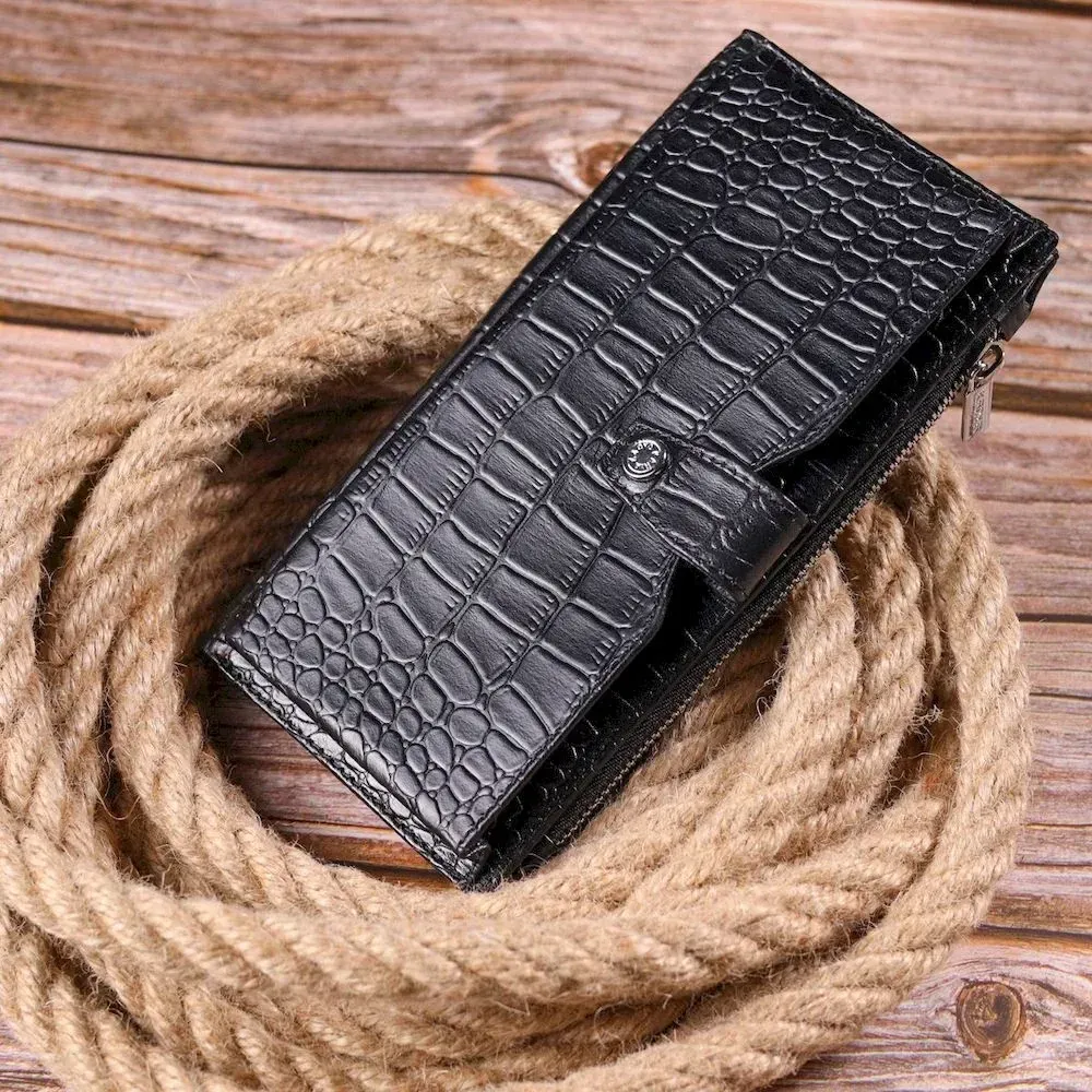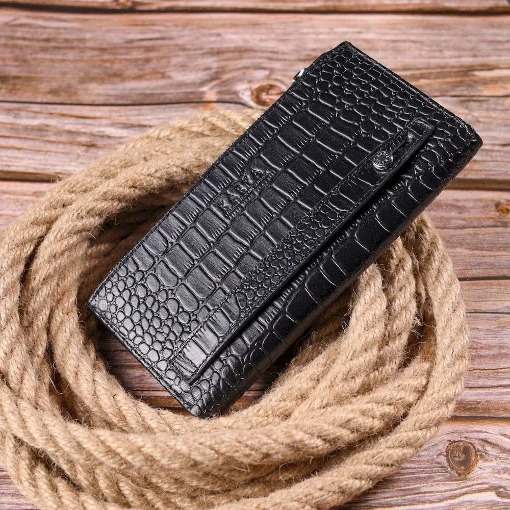 Вертикальное мужское портмоне из натуральной кожи с тиснением под крокодила KARYA 21420 Черный