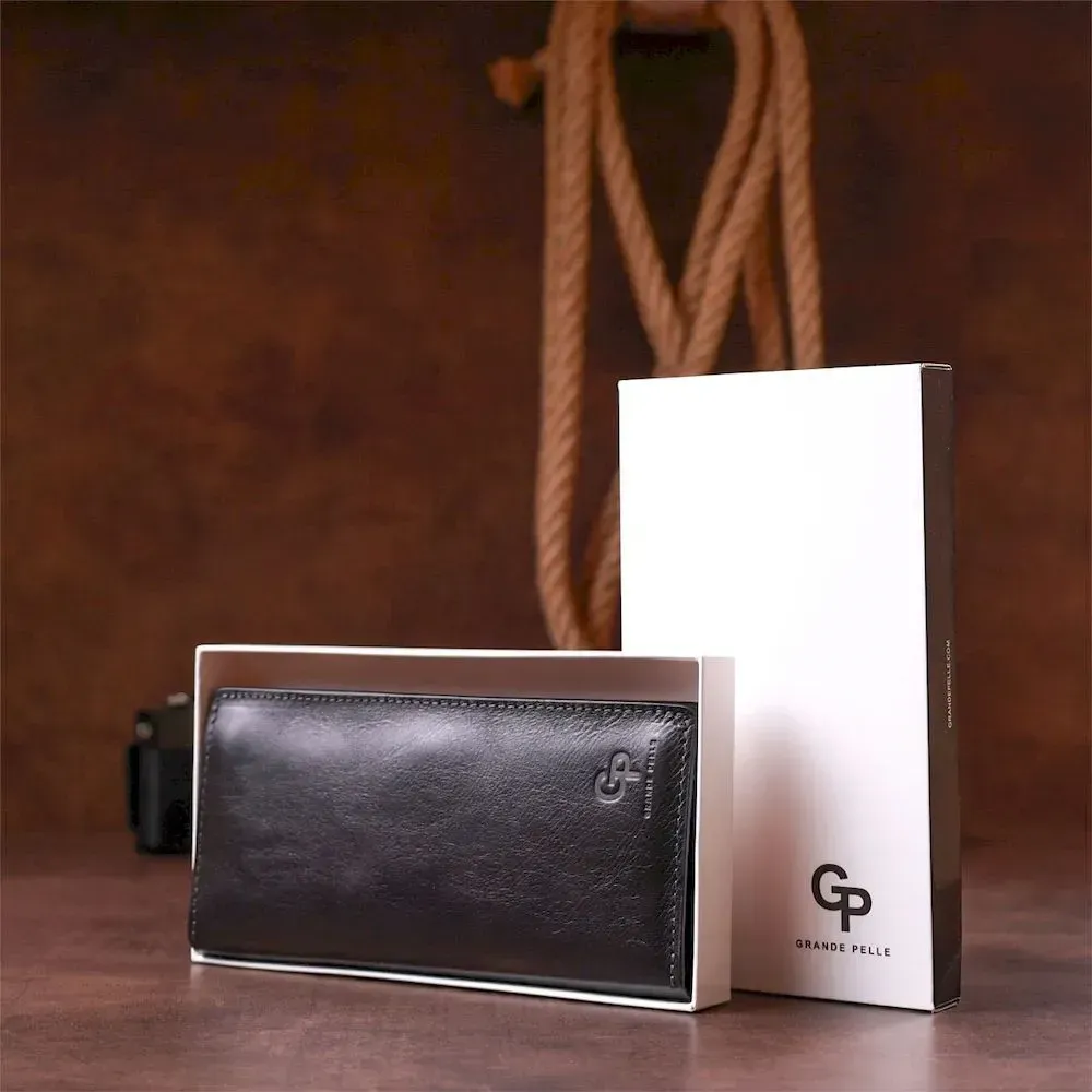 Вертикальный бумажник унисекс на магните GRANDE PELLE 11212 Черный