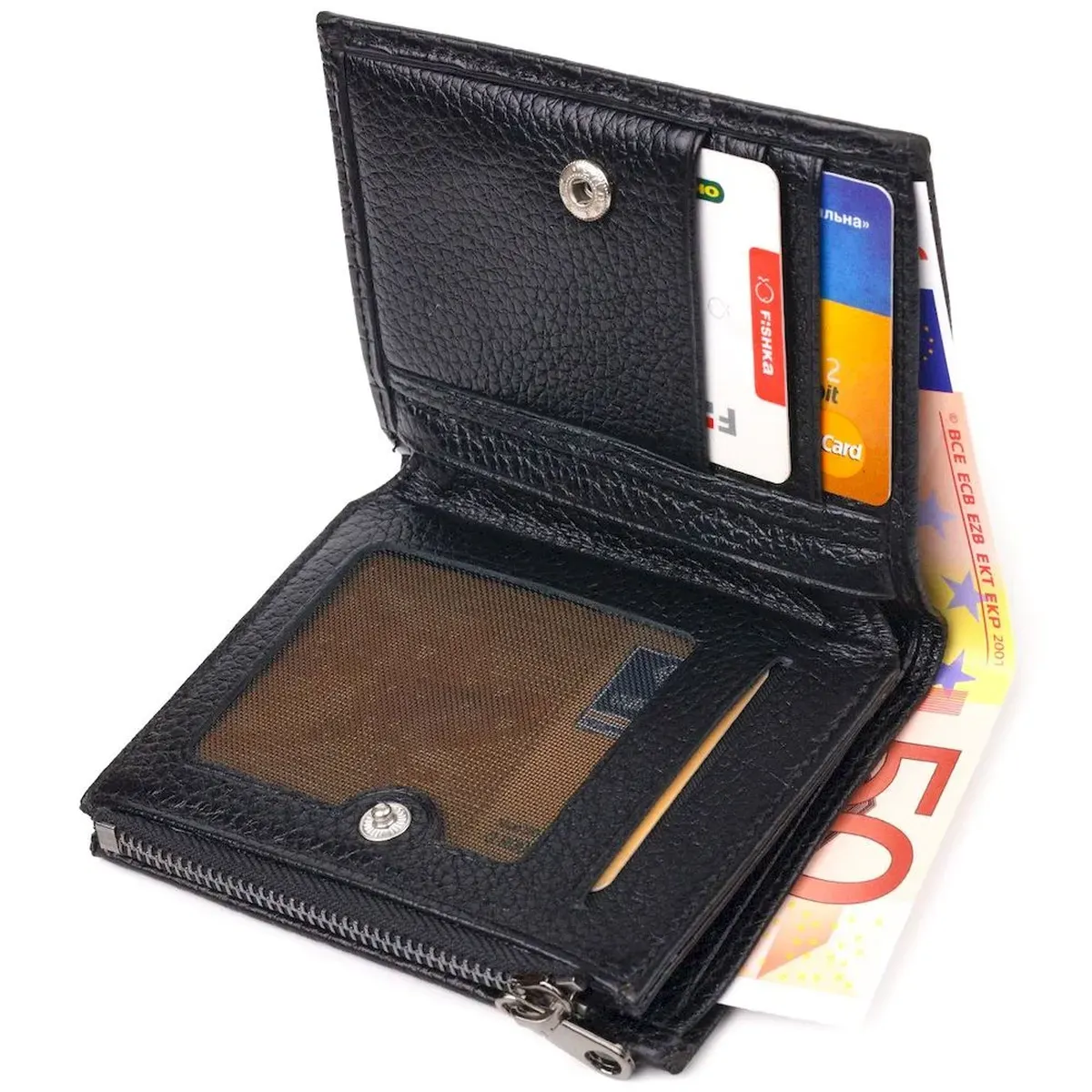 Компактный кошелек унисекс компактного размера из натуральной кожи, с тиснением под крокодила. Аксессуар имеет отделение для купюр, монетницу, что закрывается на молнию, два скрытых кармана и десять ячеек для карточек, одна под сеточкой. Закрывается аксессуар в два сложения на кнопку. Качественный кожаный аксессуар всегда считался показателем вкуса и достатка, именно такие изделия представлени в нашем магазине, у нас каждый найдет что-то для себя.