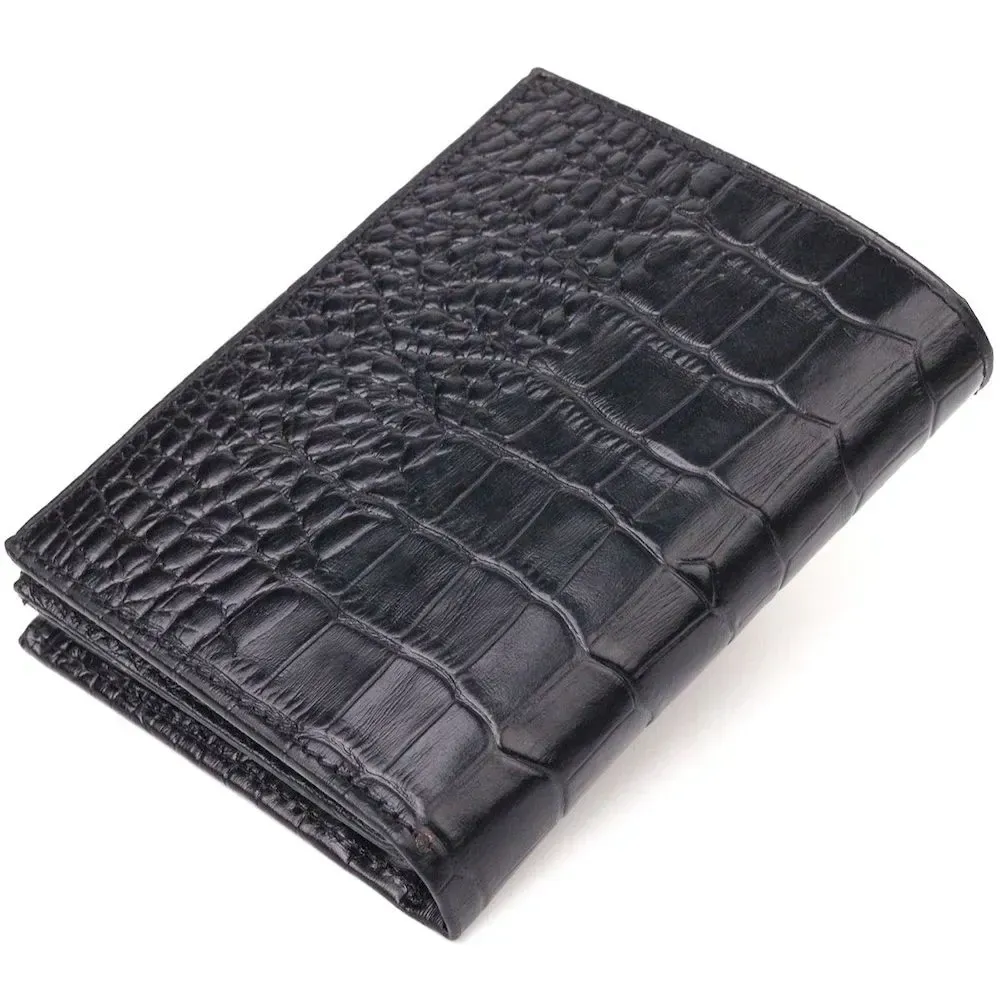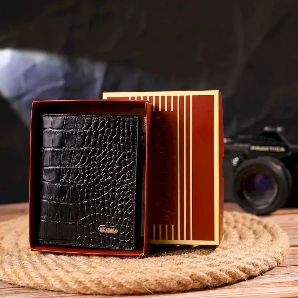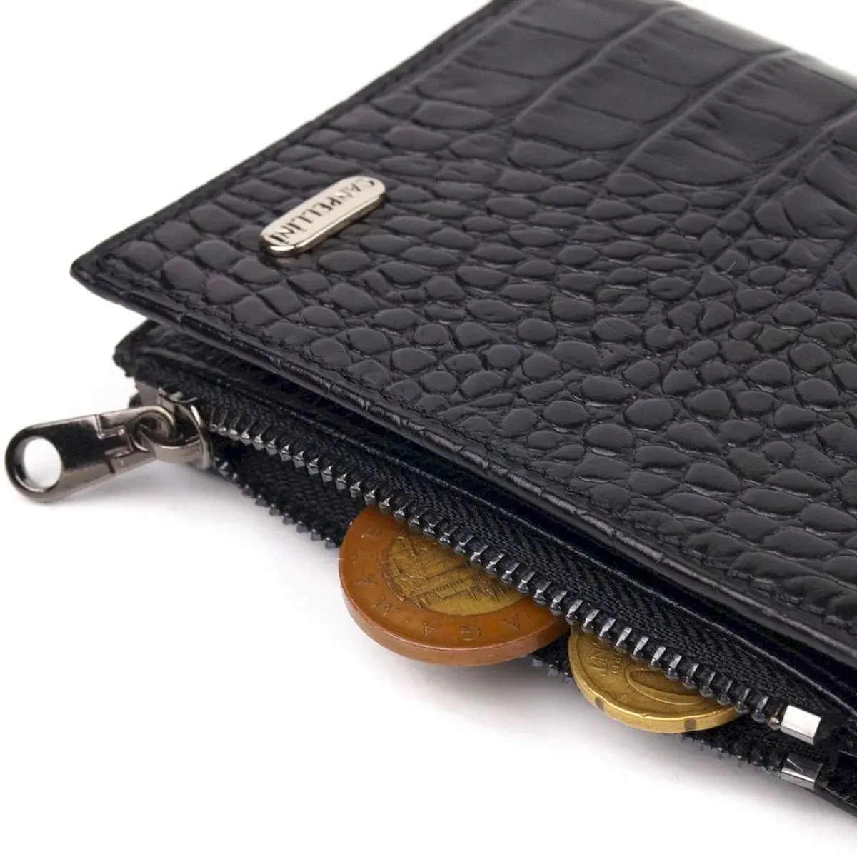 Вертикальный кошелек из натуральной кожи с тиснением под крокодила CANPELLINI 21673 Черный