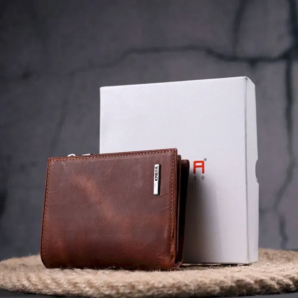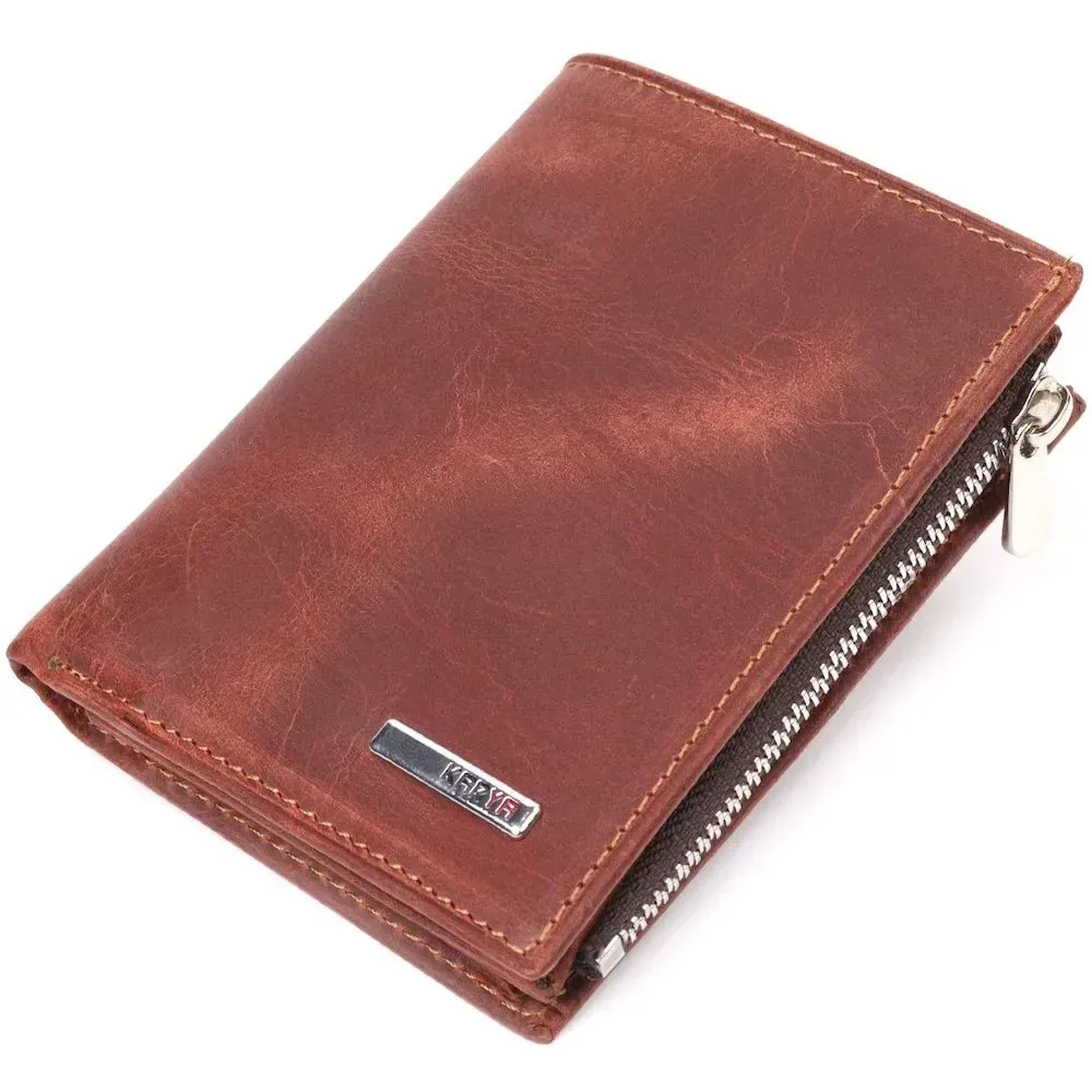Вертикальный небольшой кошелек из винтажной кожи KARYA 21385 Коричневый