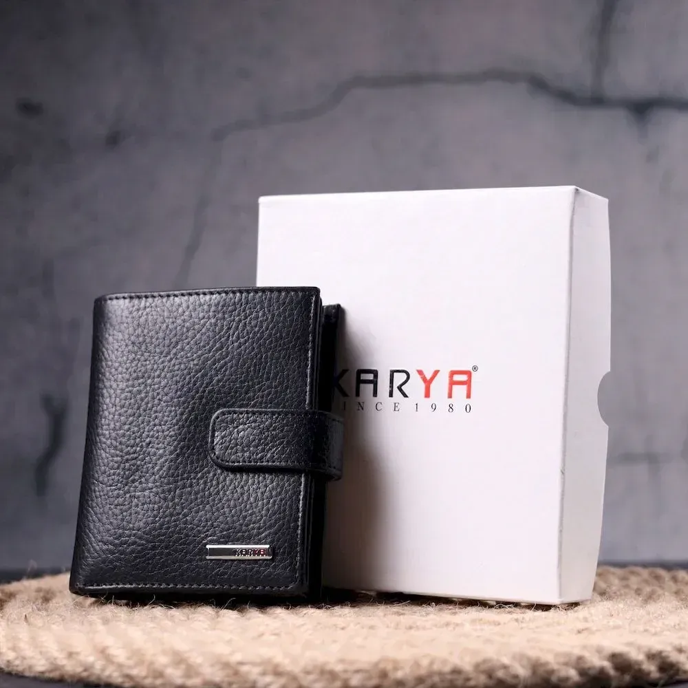 Вертикальный небольшой кожаный кошелек KARYA 21390 Черный