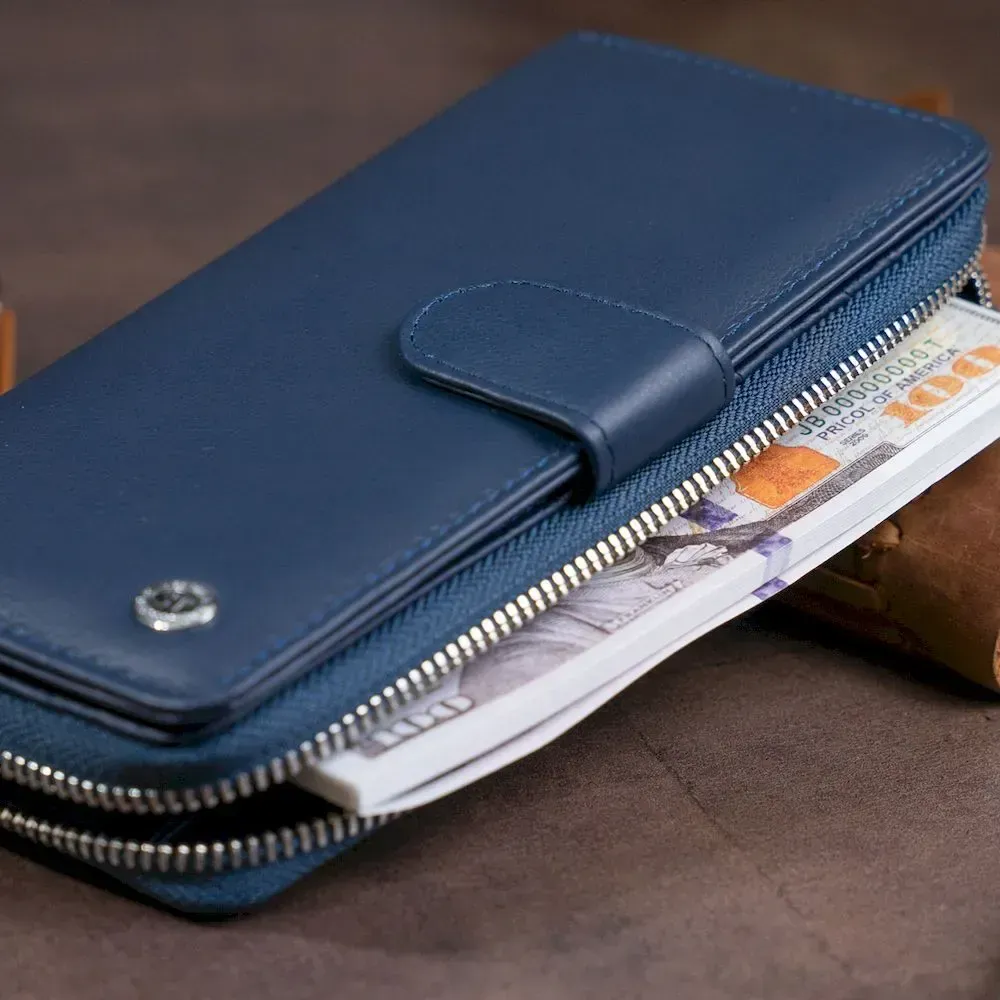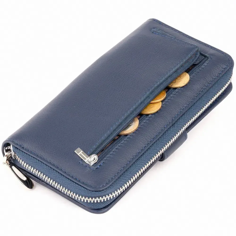 Вертикальный вместительный кошелек из кожи унисекс ST Leather 19301 Синий