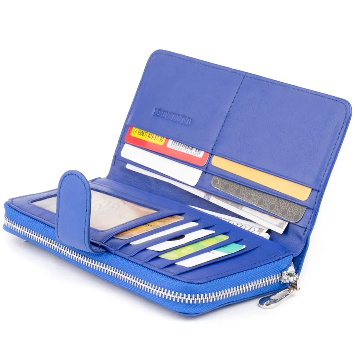 Вместительный кошелек для мужчин и женщин насыщенного синего цвета. Аксессуар в таком цвете точно не останется без внимания. Изделие выглядит очень стильно и несмотря на свой казалось бы громоздкий размер удобно лежит в руке. Такой аксессуар выделит вас из толпы и подчеркнет отменный вкус. Модель имеет достаточное количество ячеек для кредиток. Кошелек способен заменить вам визитницу. Таким образом, покупая один аксессуар вы получаете по функциональности даже 2 аксессуара: кошелек и визитницу. Рекомендуем вам данную модель, если вы находитесь в поиске подарка. На нашем сайте аксессуар доступен в разных цветах. Заказывайте данный аксессуар на нашем сайте по самой доступной цене.