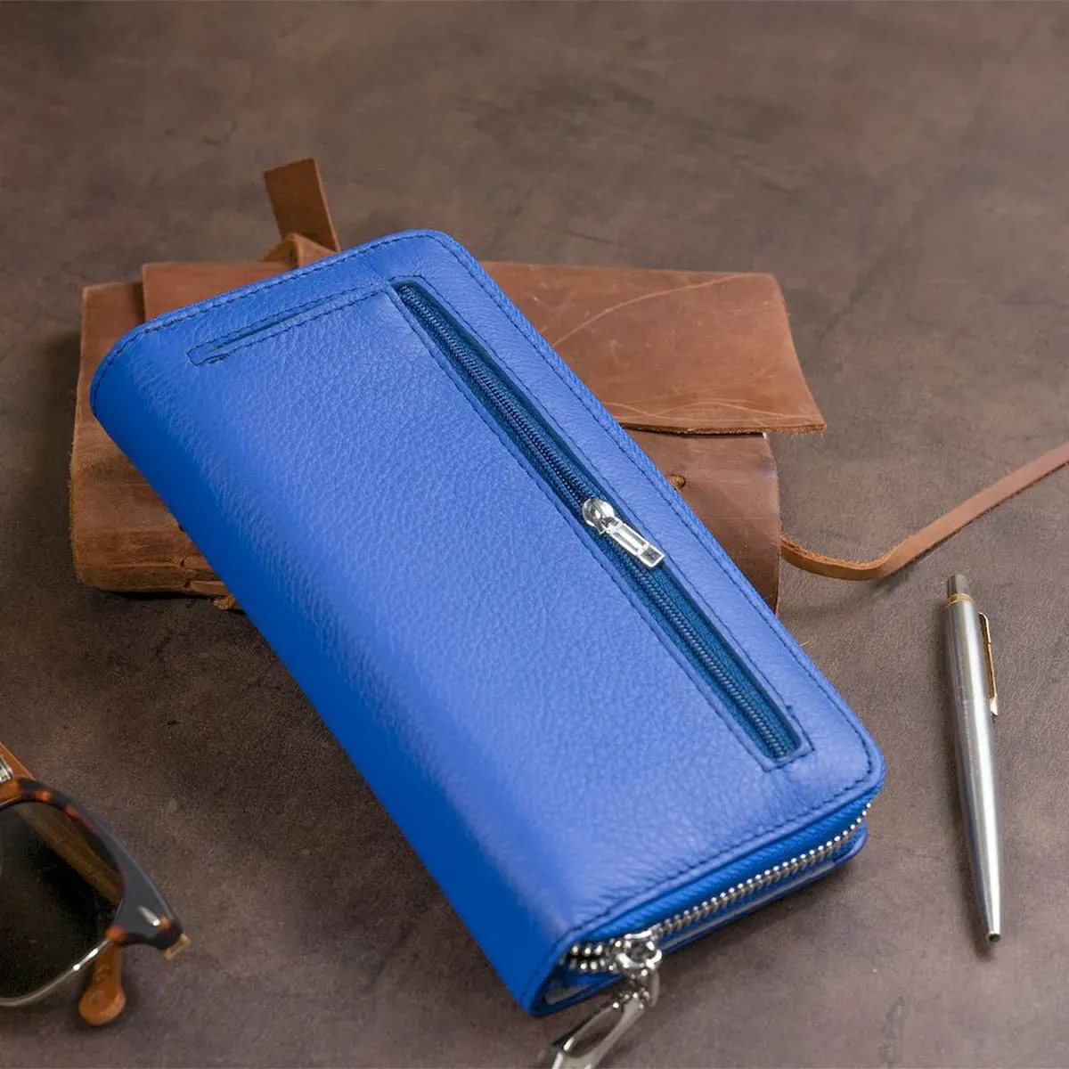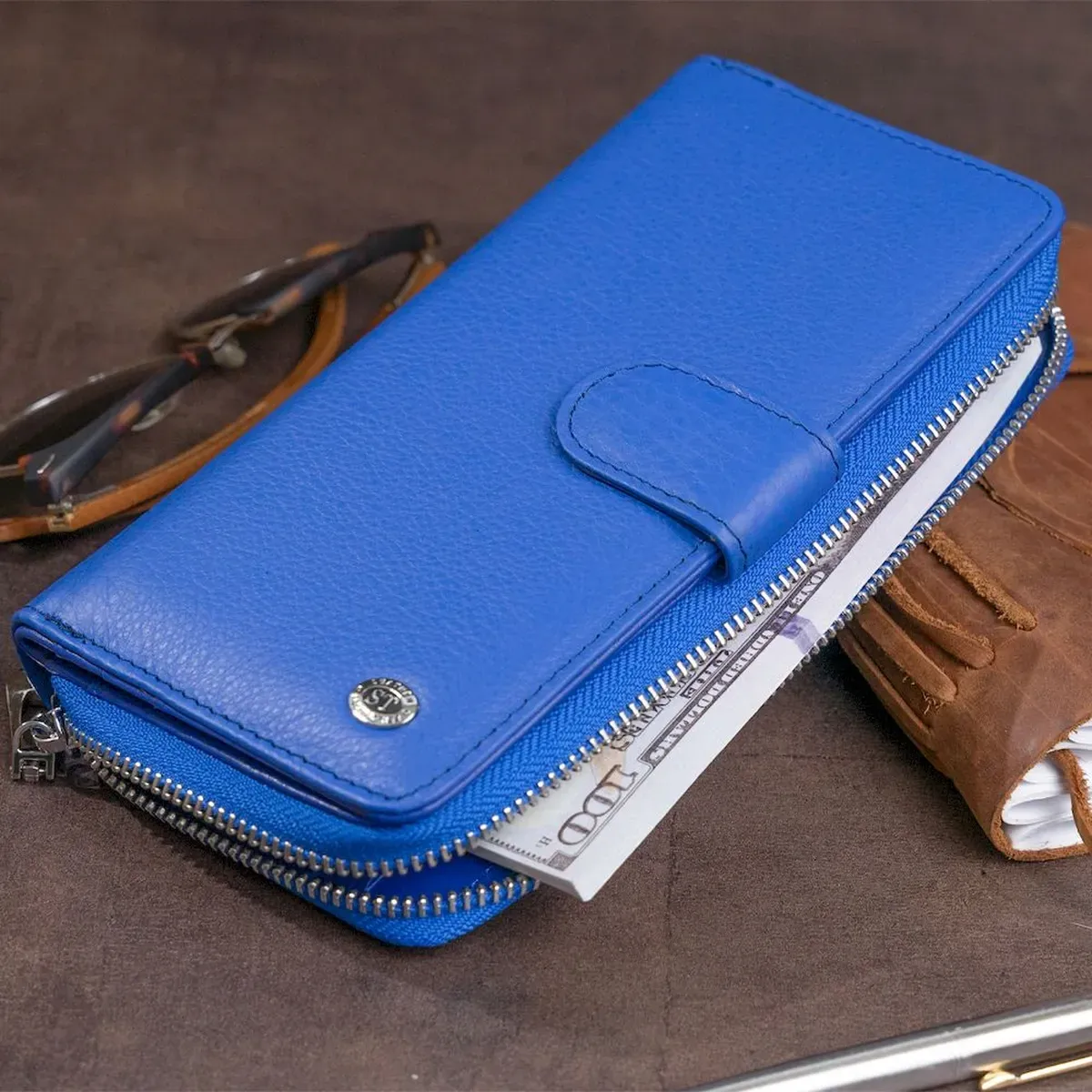 Вертикальный вместительный кошелек из кожи унисекс ST Leather 19305 Синий