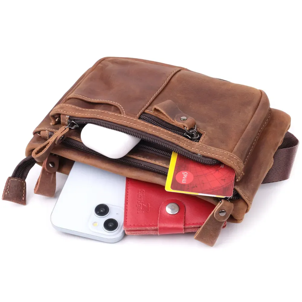 Вінтажна бананка для чоловіків з натуральної шкіри Vintage 15104 Коричневий